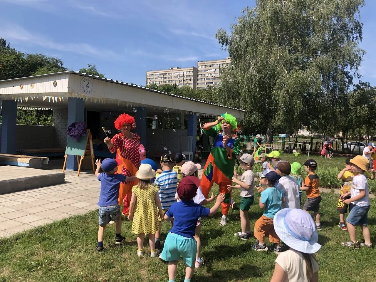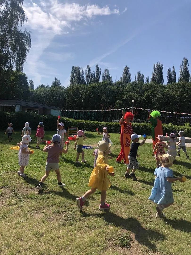 30 июня в " Крепыш" состоялся " Праздник мыльных пузырей" для детей младших и средних групп. К ребятам на праздник прилетели на воздушных шарах клоуны Клёпа и Стёпа. Вместе с ними малыши отправились в чудесную Страну Мыльных Пузырей. Здесь ребят ждали весёлые игры : " Пузырь", "Найди свой домик", " Мой весёлый звонкий мяч". В конце праздника состоялся салют из мыльных пузырей!