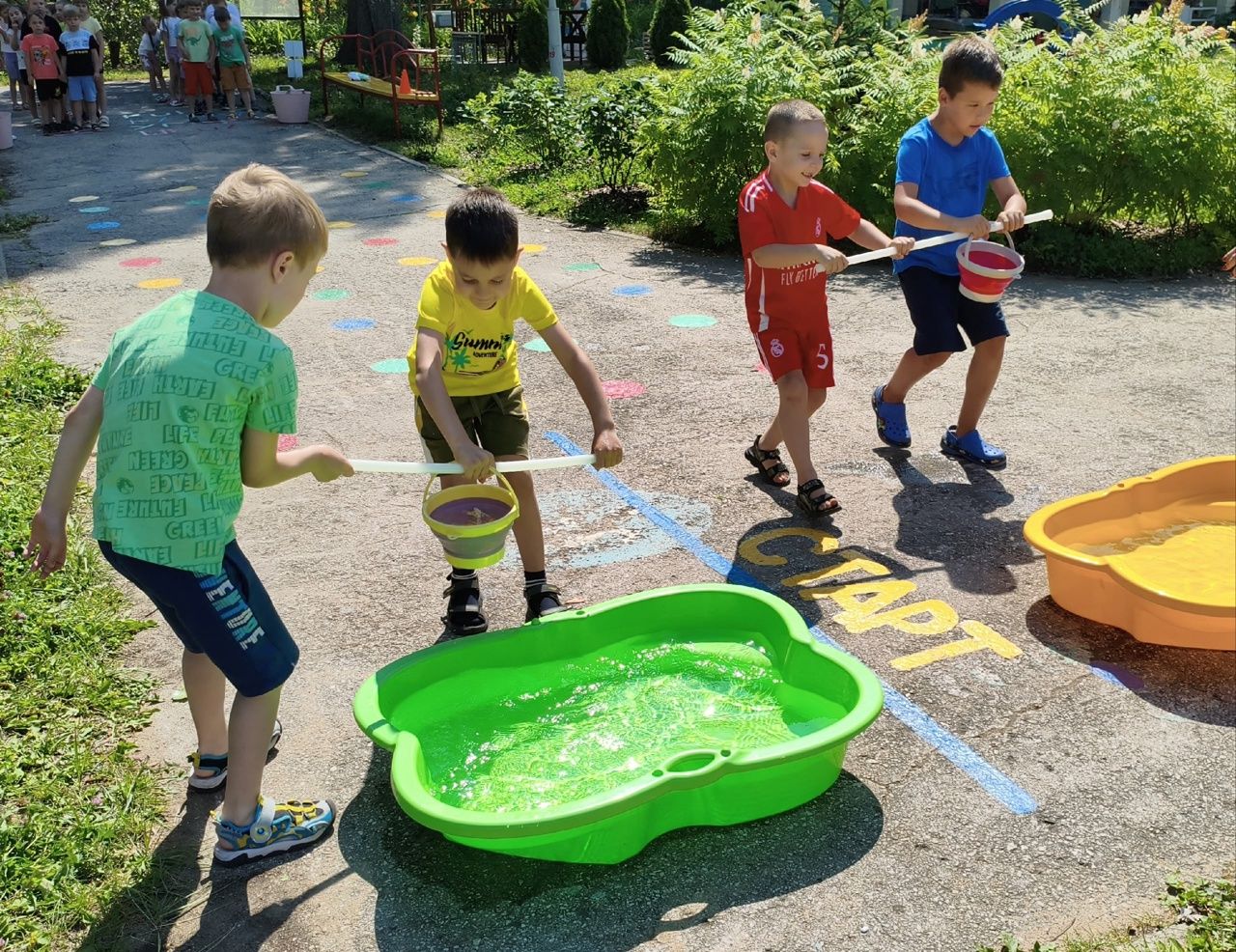 Игра "Водоносы"— дети ловко переносили воду, стараясь не расплескать ни капли! Кто быстрее? Кто аккуратнее? Все справились на отлично!