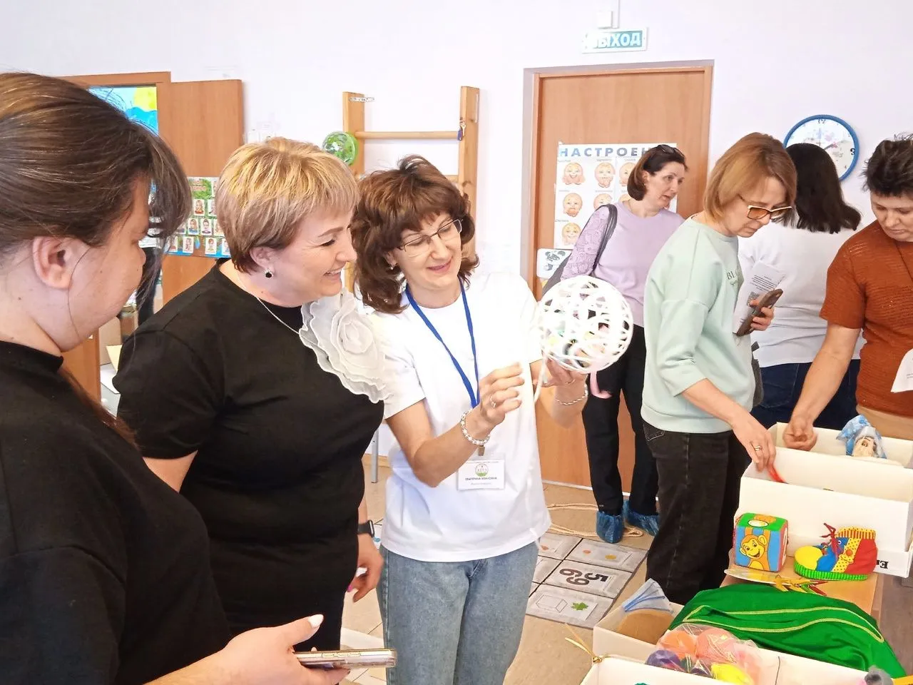 Педагог- психолог Екатерина Ивановна Кузнева, инструкторы по физической культуре Наталья Александровна Пахнина и Алёна Владимировна Блинова, а также учителя-логопеды: Елизавета Юрьевна Кривошеева, Ирина Николаевна Халикова и Ирина Алексеевна Скрябина познакомили педагогов г. Тольятти с играми и пособиями на развитие сенсомоторной интеграции у дошкольников, в том числе изготовленными руками педагогов нашего детского сада.