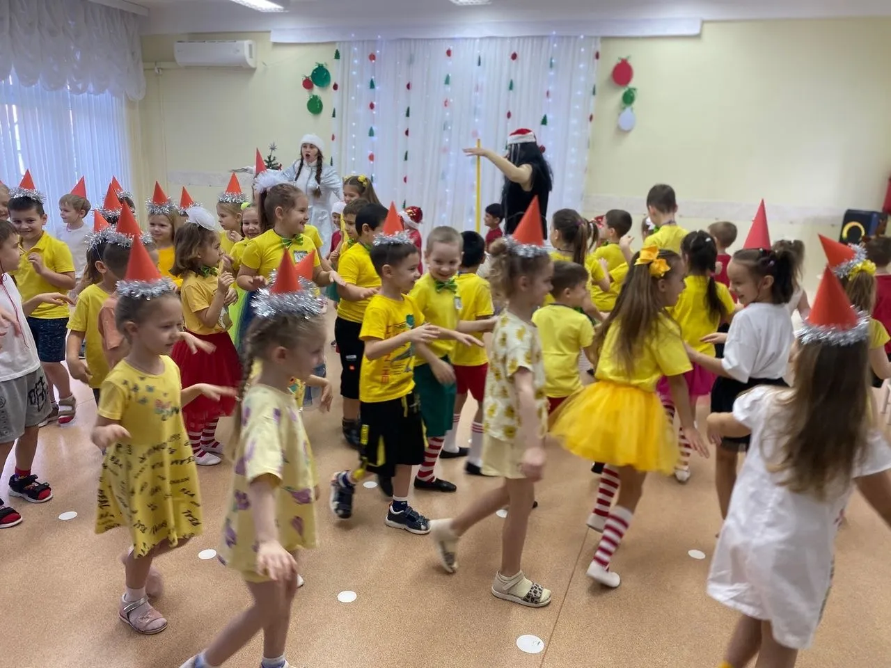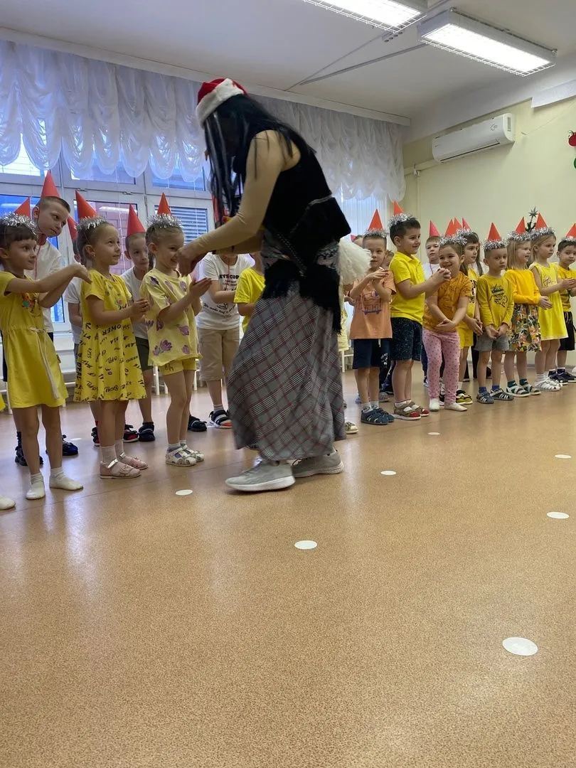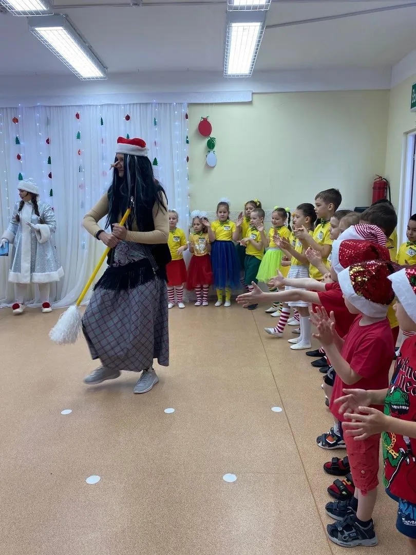 И сегодня ребят встретили Снегурочка и баба Ягуся, которые устроили танцевальный новогодний батл.