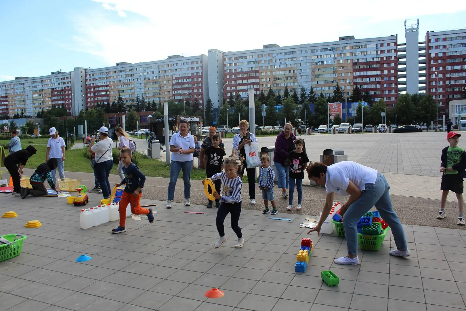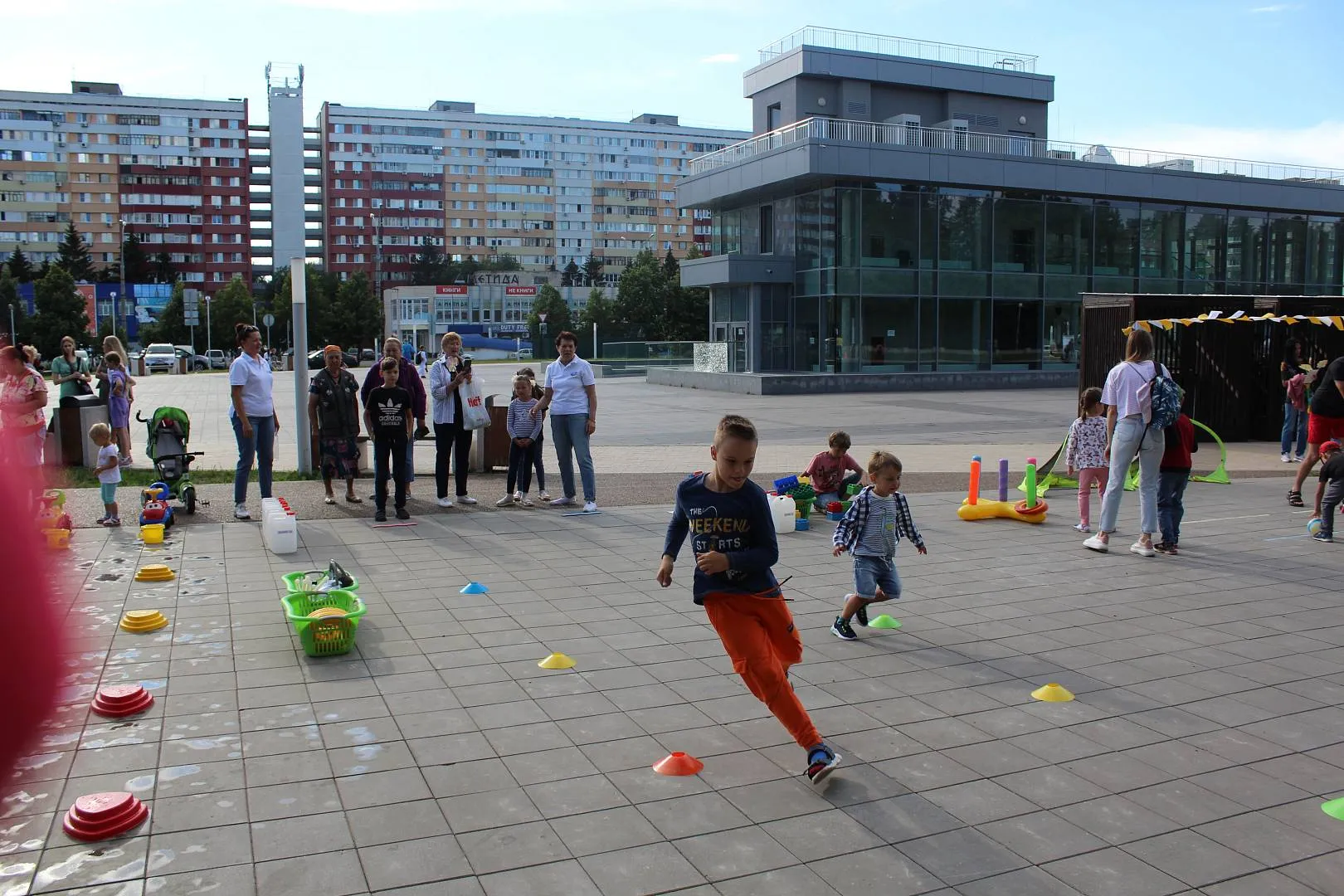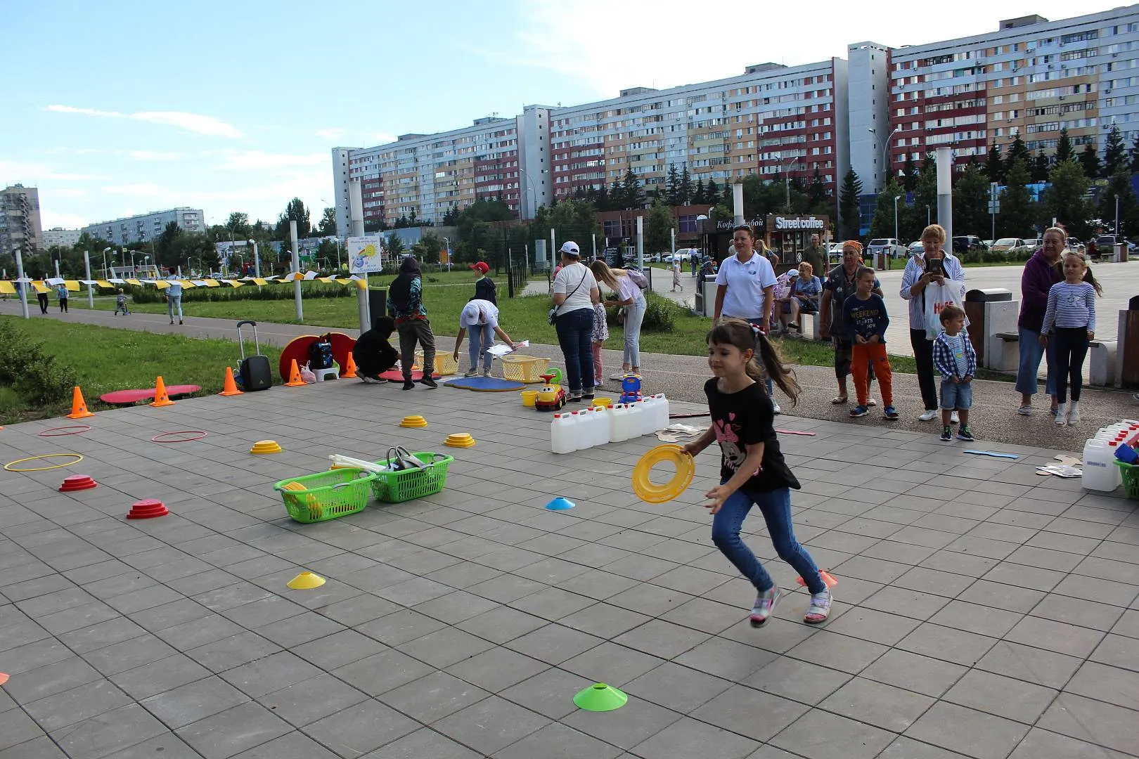 площадка «СПОРТ-УРА!» (флеш-моб, эстафеты, подвижные игры, игры-соревнования, групповые и индивидуальные двигательные игры-упражнения с нестандартным физкультурным оборудованием).