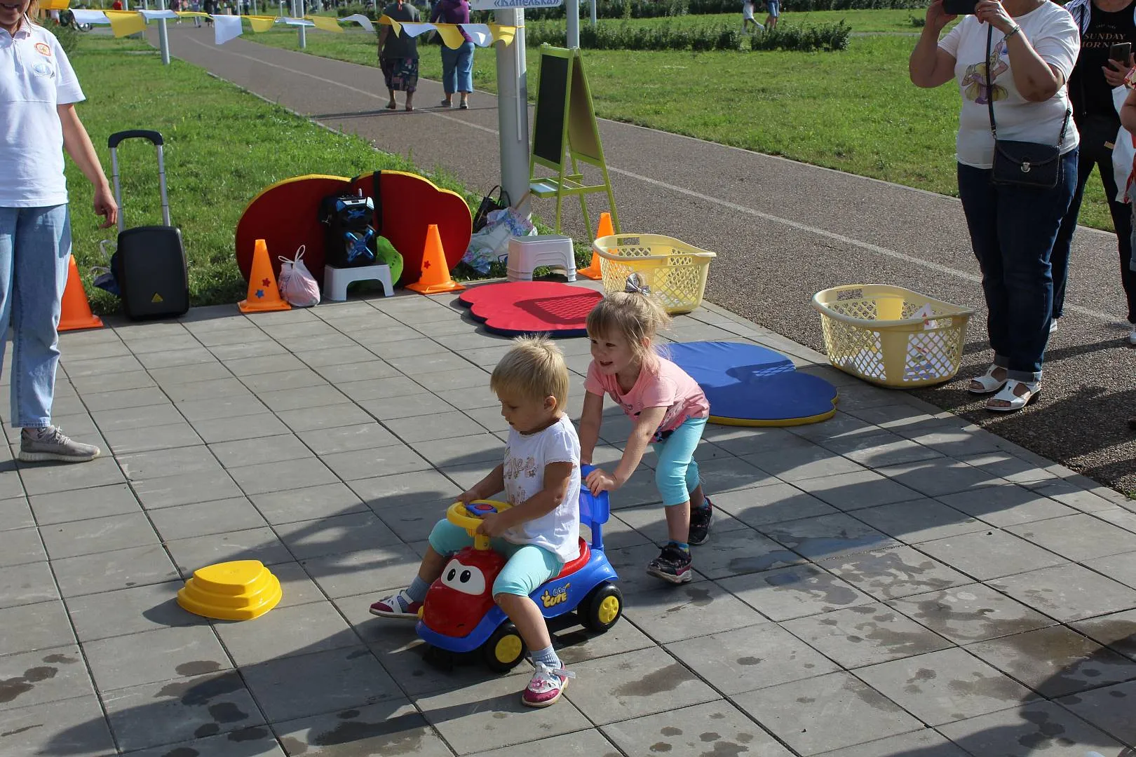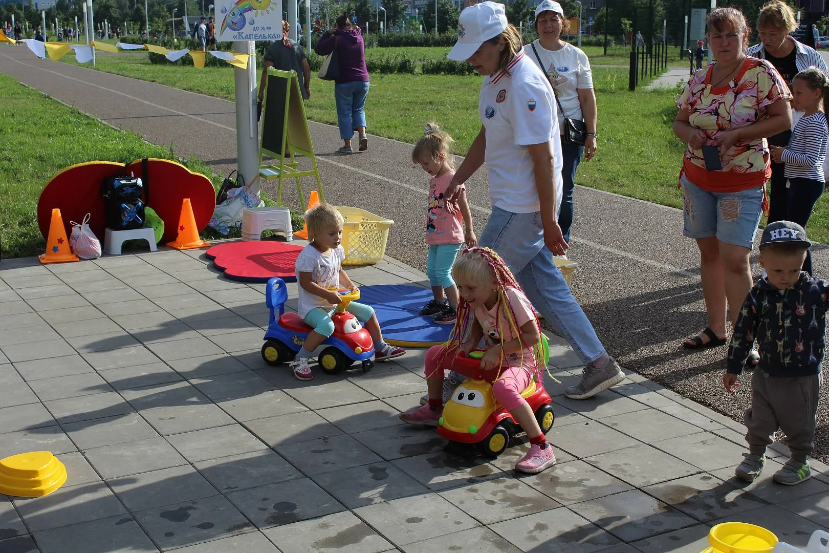Алина: «Спасибо вам огромное! Великолепная площадка. И сотрудники ваши такие молодцы. Ни одного ребенка не оставили без внимания. И в детский сад мы пойдем именно к вам. А моя Софья меня очень удивила. То, что она непоседа я вижу каждый день, но что такая хитруля сообразительная… В конкурсе, где нужно заполнить ведерко водой, нося воду из большой емкости маленькими черпачками, она быстро сообразила, зачем бегать туда – сюда, взяла ведро пошла и сразу зачерпнула полное. А ведь ей еще и двух лет нет!»