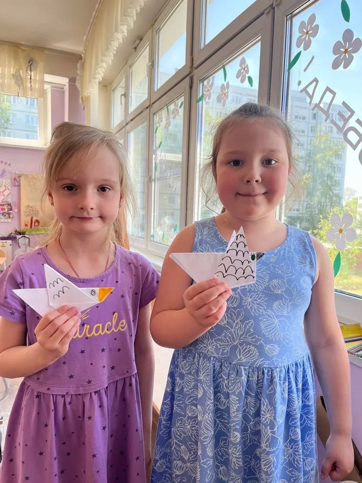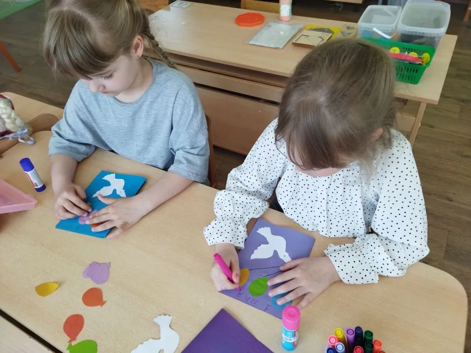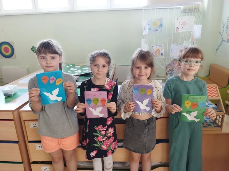 А ребята детского сада Ягодка узнали о том, что Голубь - это символ мира, олицетворение радости, света, счастливых детских улыбок. Ребята решили сделать голубей и открытки на первое мая. Они ответственно и серьезно подошли к делу, аккуратно и терпеливо шаг за шагом делали своих голубков.