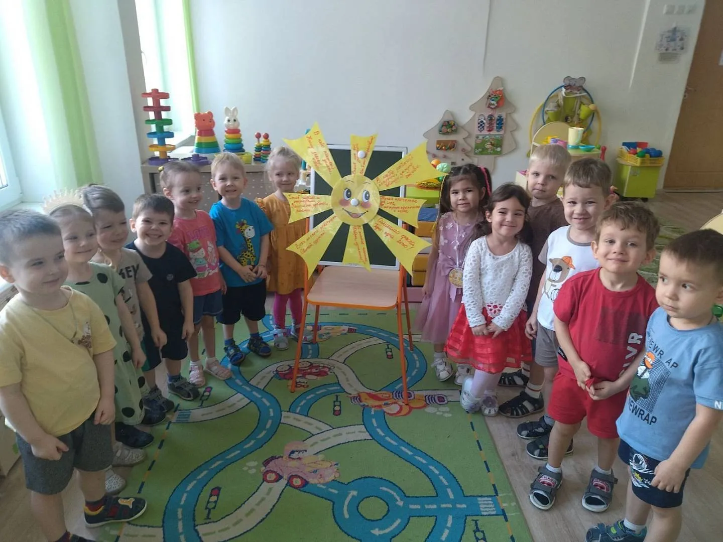 Солнце - главное для нас небесное светило, которое даёт тепло , свет и радость. Ведь именно его горячие и радостные лучи дарят жизнь всему на земле. Авторы Программы "Социокультурные Истоки" сравнивают солнышко с теплотой , добром и красотой. В группе " Ладушки" воспитатели провели акцию " Подари солнышку песенку - потешку". Родители с интересом вписывали на лучиках любимую песенку - потешку о солнышке, а воспитатели с детьми заучивали их в группе. Песенки - потешки о солнышке воспитывают в детях любовь к окружающему миру, уважительно доброе отношение к красному солнышку и родной природе!