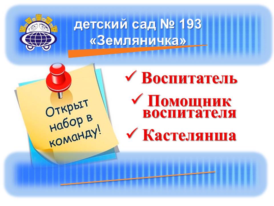 Детский сад "Планеты детства "Лада" приглашают на работу: