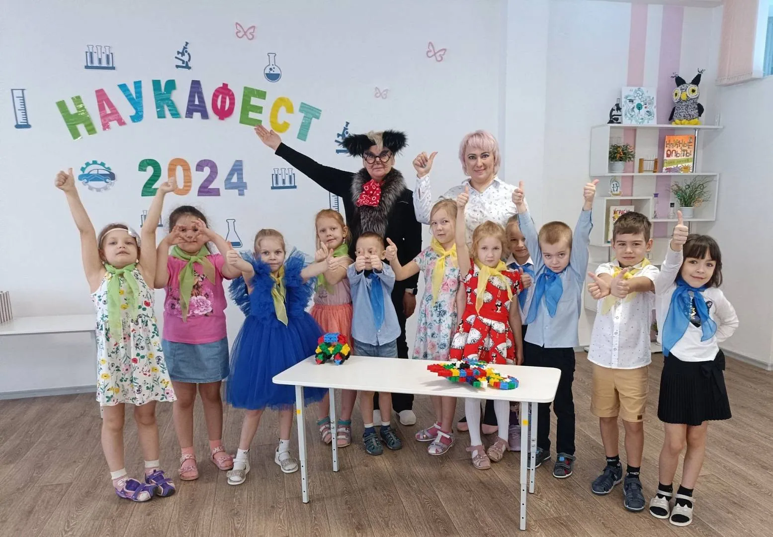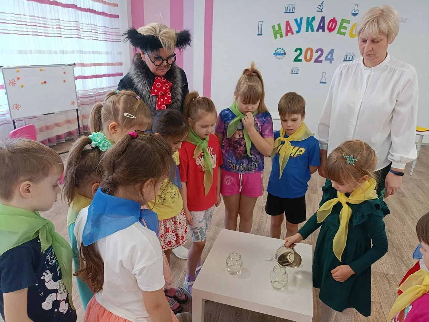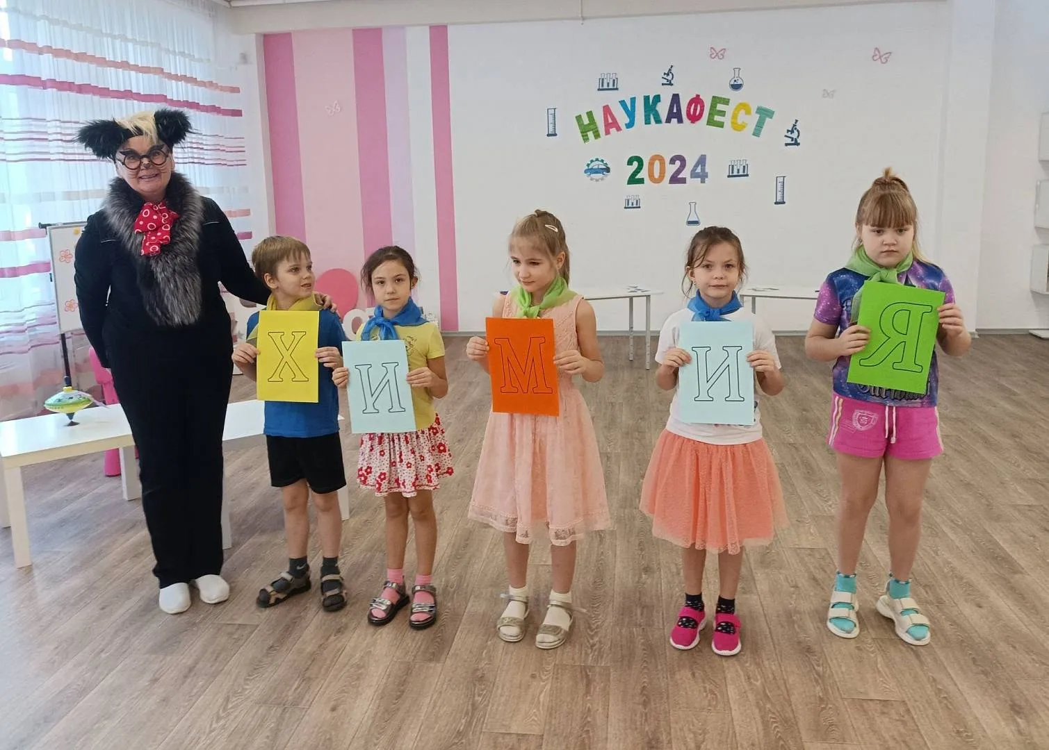 Кот Ученый поздравил всех с праздником и пожелал юным исследователям ярких открытий.