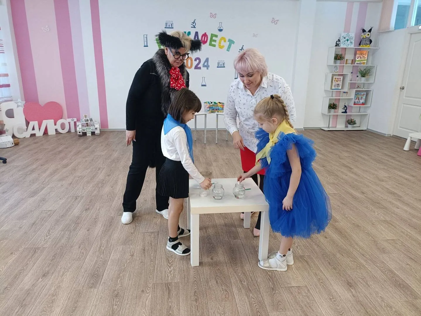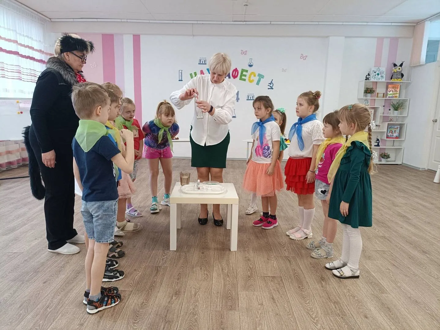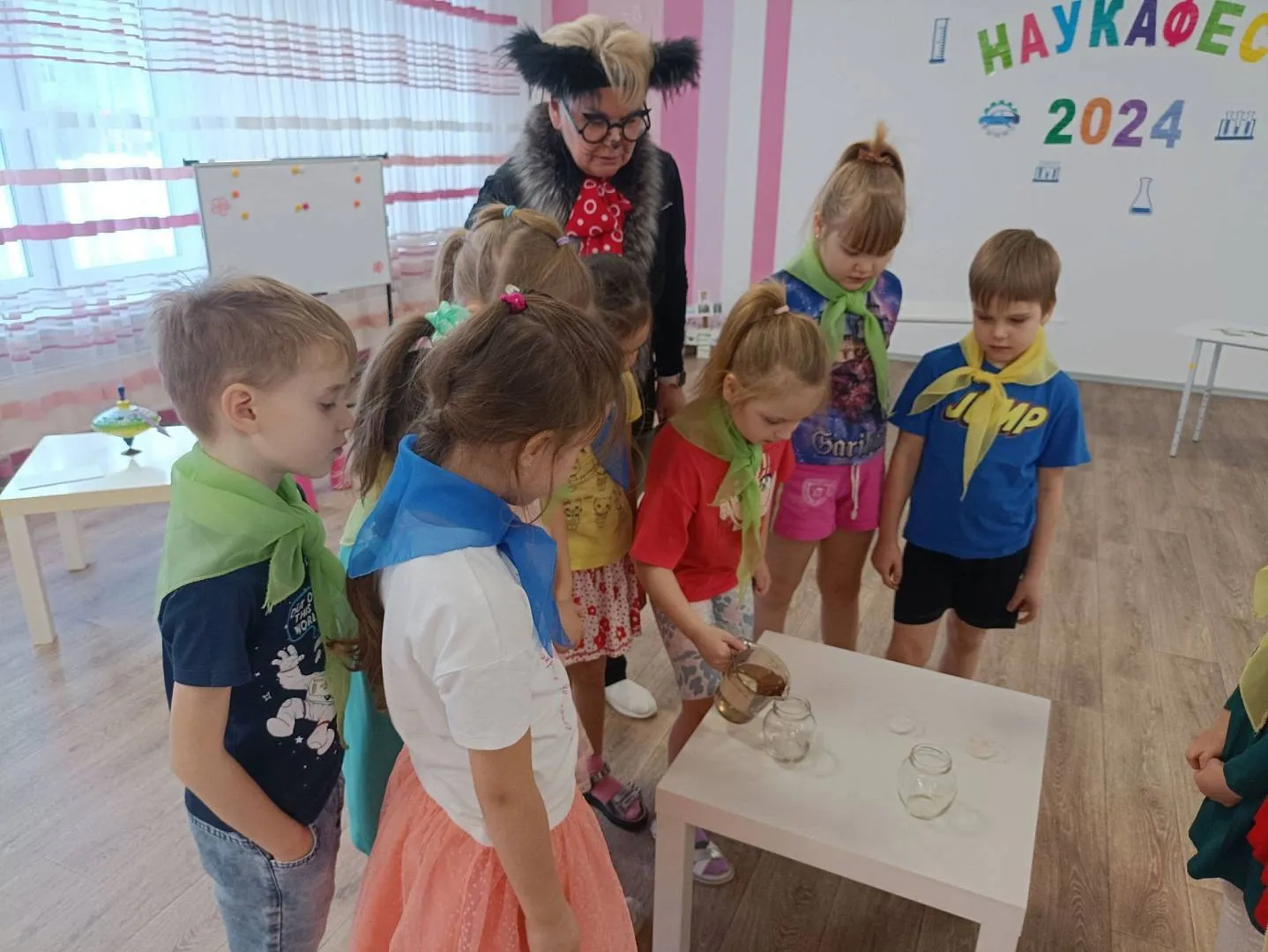 Кот Ученый поздравил всех с праздником и пожелал юным исследователям ярких открытий.