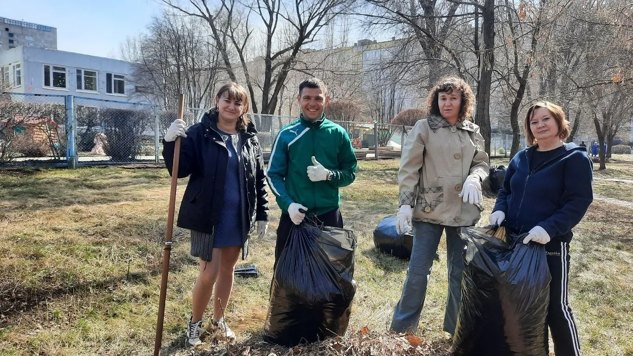 Сегодня в "Златовласке" прошел субботник. Сотрудники вышли на уборку территории детского сада.