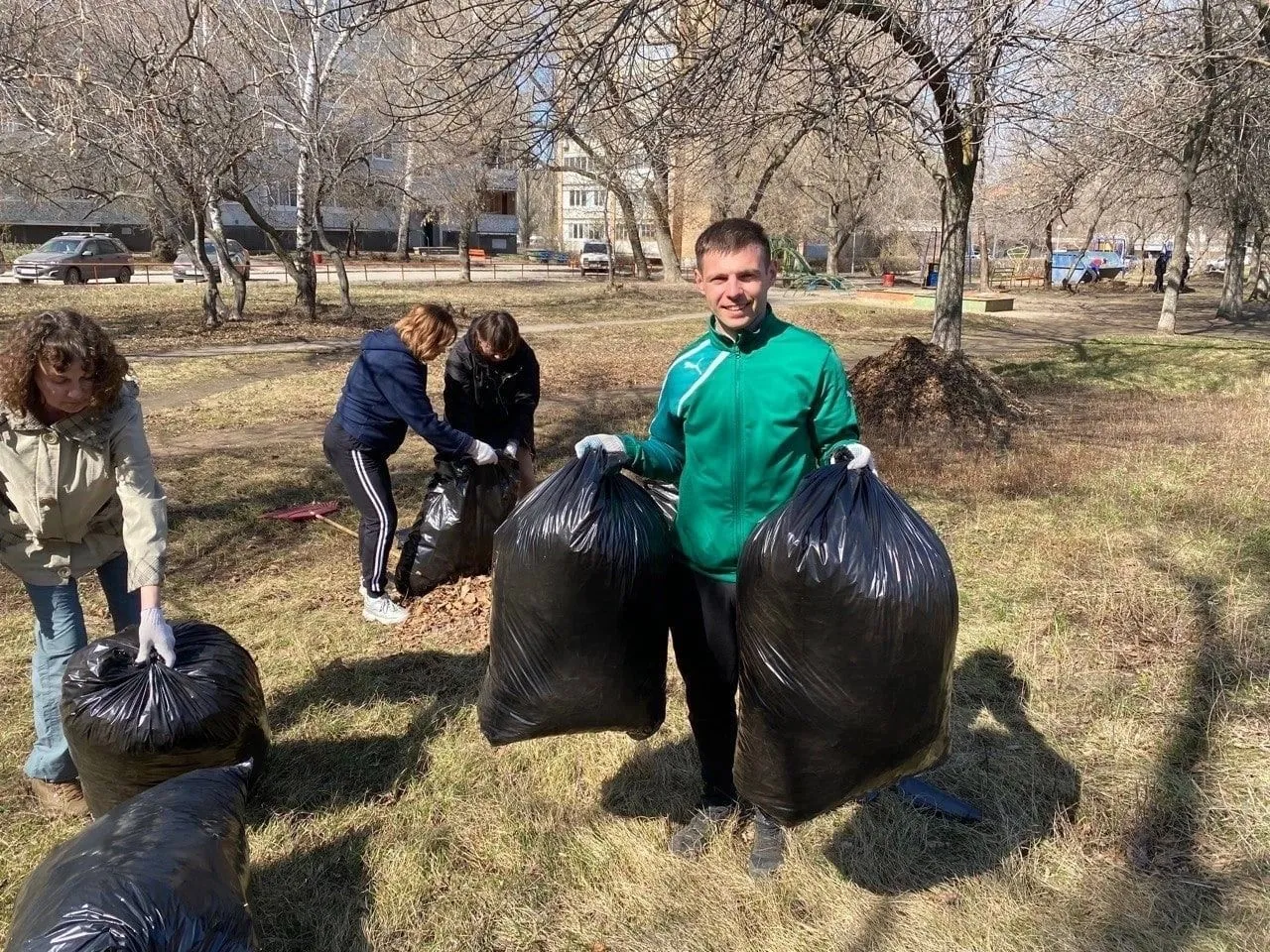 А на помощь мы позвали активиста Андрея Селищева, который помог нам убрать территорию от листвы.