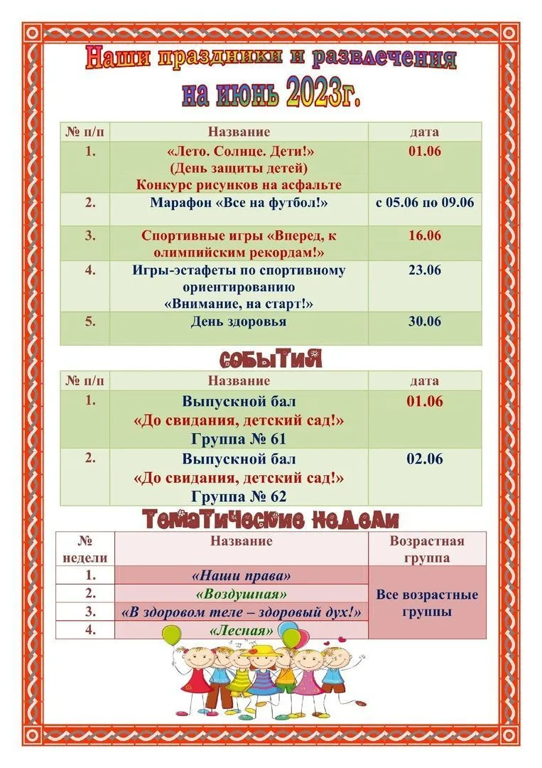 Тематические дни и праздники в июне