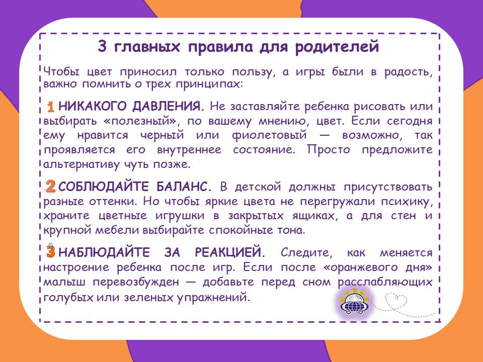 Дошкольники мыслят образами и ощущениями. Для них красный — это не просто «красный», это сигнал «беги, кричи, действуй!», а голубой — «тишина и покой». Психологи называют это цветотерапией (хромотерапией).