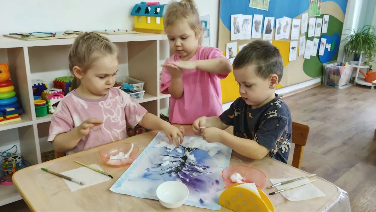 Сегодня мы приглашаем вас в творческую мастерскую 21 группы, где ребята превращаются в маленьких художников и волшебников, чтобы запечатлеть красоту зимы в необычных техниках.