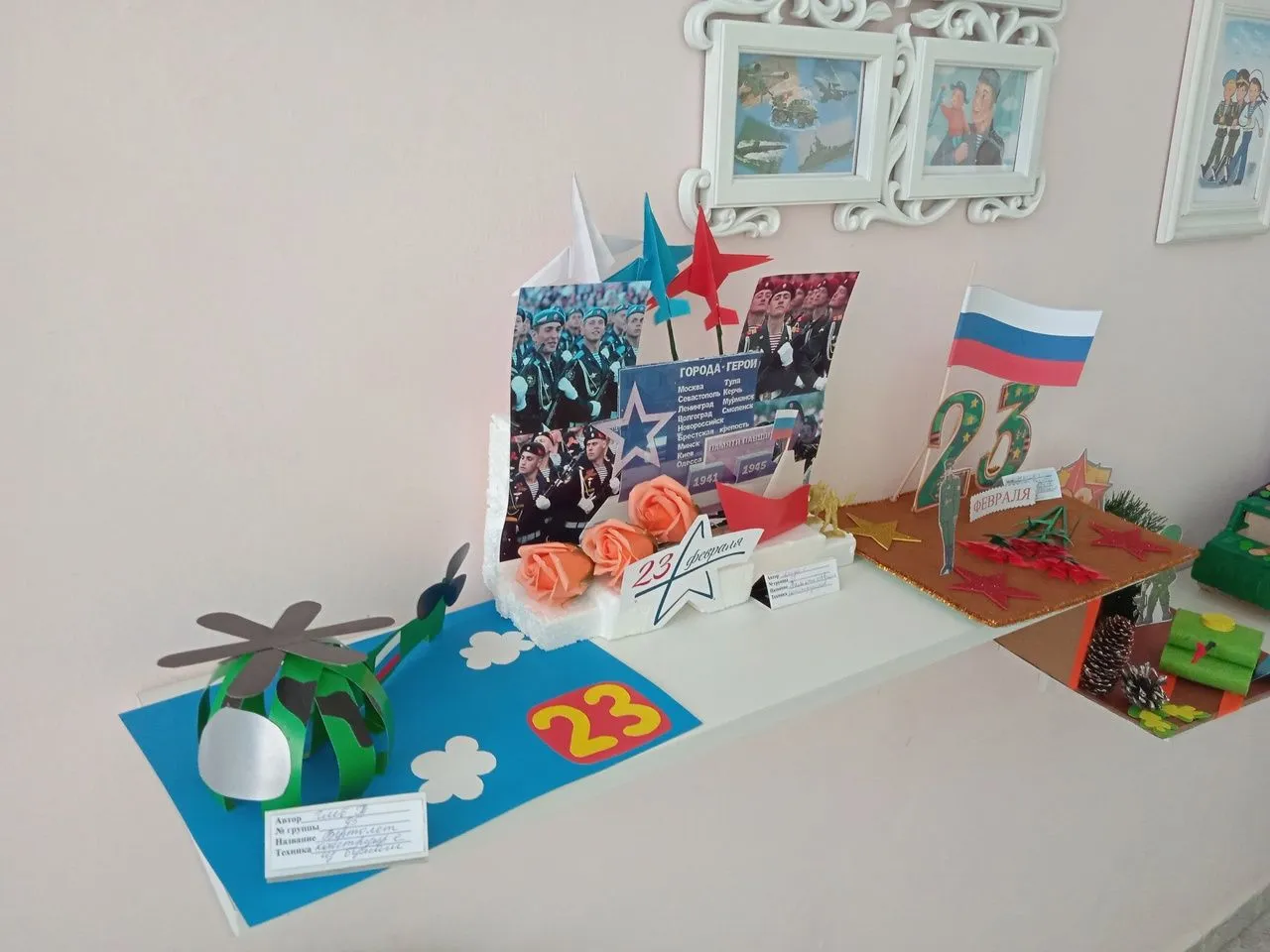 Ко Дню защитника Отечества дети вместе с родителями сделали красивые поделки, которые можно было посмотреть на нашей выставке в холле детского сада. Спасибо всем участникам за ваши прекрасные работы!