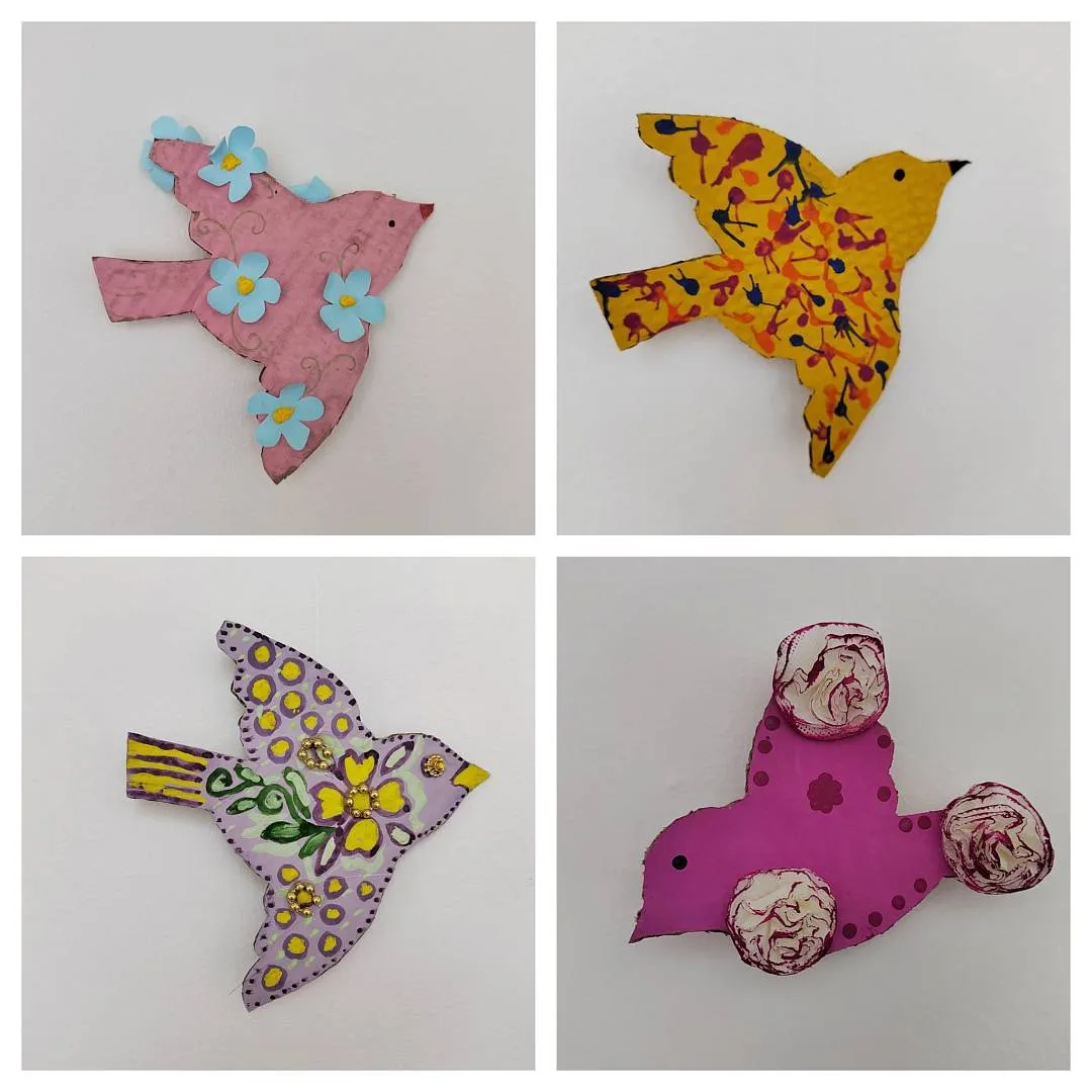 И теперь эти весенние птицы украшают коридор детского сада.