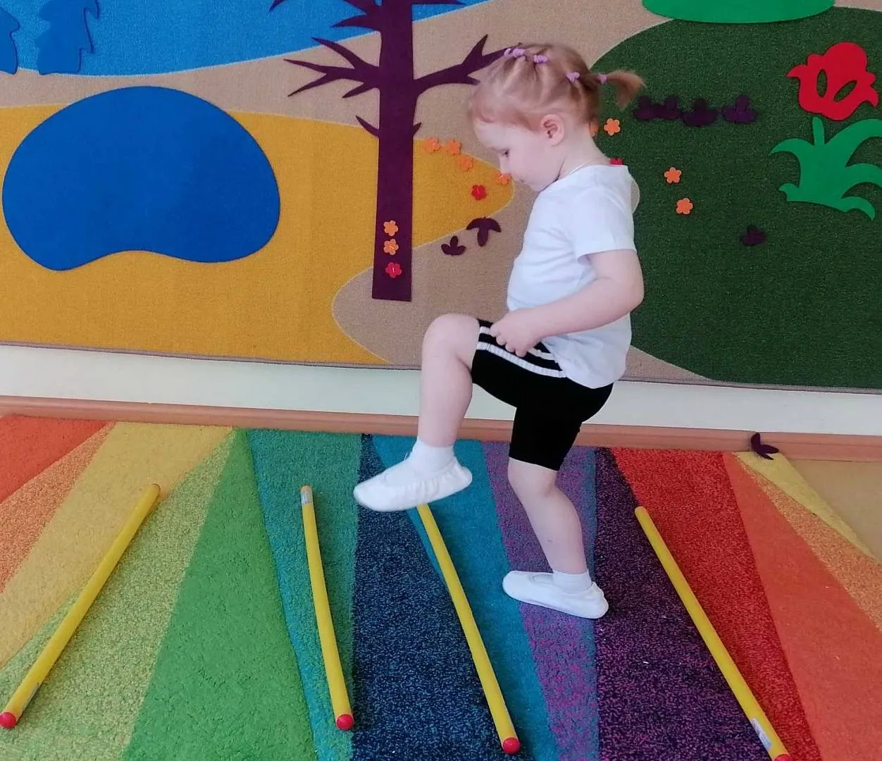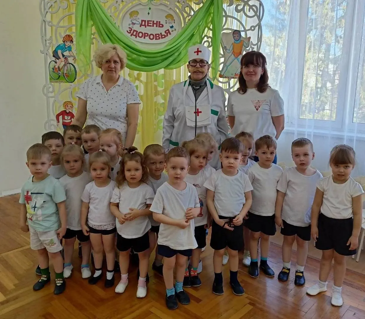 Весь день дети путешествовали по разным станциям страны Здоровья. Малыши попали в город Витаминдию, где встретились с доктором Айболитом. Ребята поиграли с ним в игру с разноцветными мячами и получили в подарок полезные витамины.