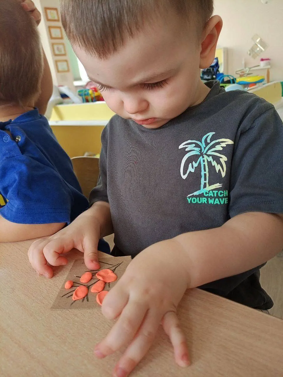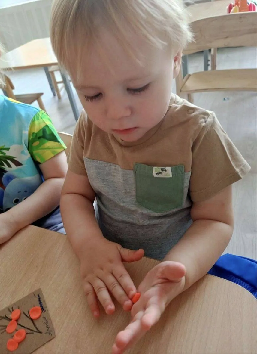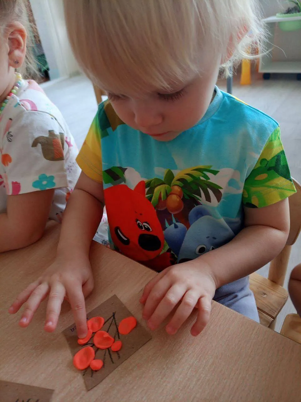 Наши малыши из 1 младшей группы осваивают волшебство лепки из солёного теста – и у них получаются настоящие веточки рябины!