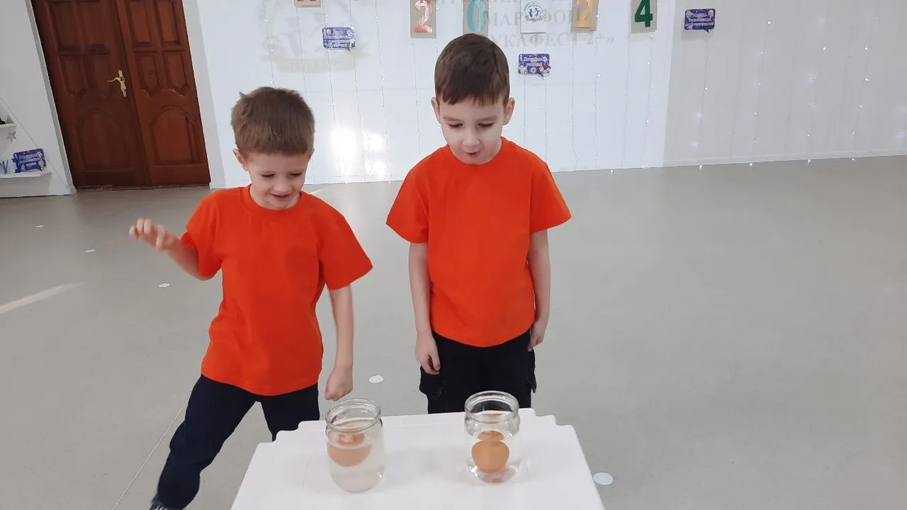 Ведь мы знаем, что Химия - это наука о веществах, их свойствах, превращениях веществ и явлениях. А вы знаете, что воздух можно услышать? Конечно же да! Мы слышим ветер, вьюгу, музыкальные духовые инструменты. И ребятам, с помощью воздушного шарика удалось услышать волшебные звуки воздуха! Еще ребята узнали про все свойства воды, что она может поменять цвет несколькими способами: а) в нее можно добавить краску, б) в заваренный черный чай положить лимон и чай сразу становится светлее, происходит химическое превращение. Вместе с Нано-Гномом ребята размялись, сделали Физминутку «Отдохнем», поиграли в игру «Капельки, ручеек, лед», провели настоящий эксперимент с яйцом "Тонет- плавает": В пресной воде - яйцо тонет, а в соленой - плавает. Если, не верите, то проведите этот опыт дома!