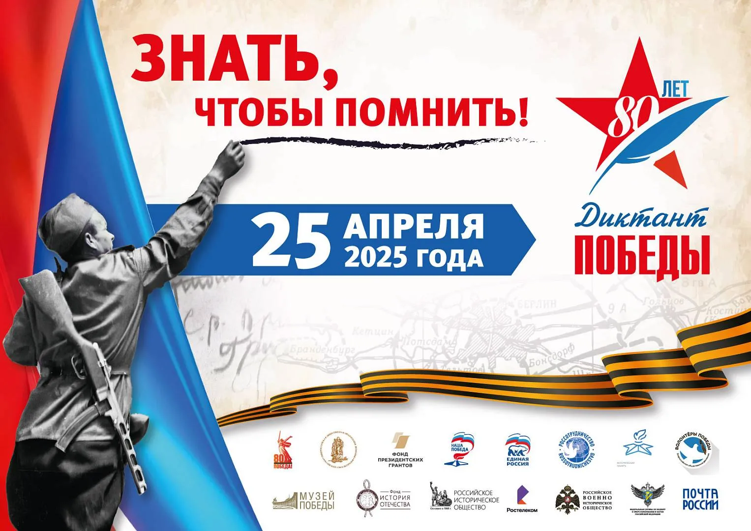 Международный исторический диктант на тему событий Великой Отечественной войны «Диктант Победы» состоится 25 апреля 2025 года.