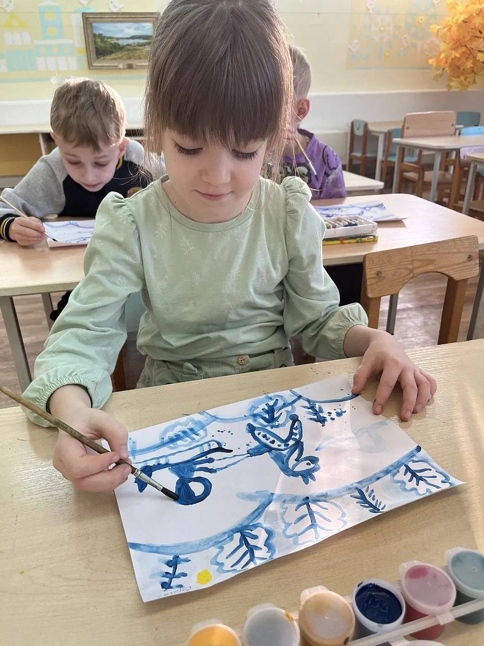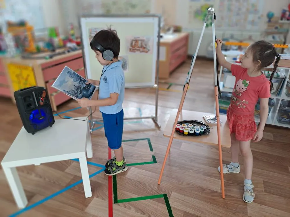 Педагог ДС № 204 включив произведение Георгия Свиридова «Весна», «Осень» и «Метель», предложила выразить свои эмоции и фантазии через искусство.