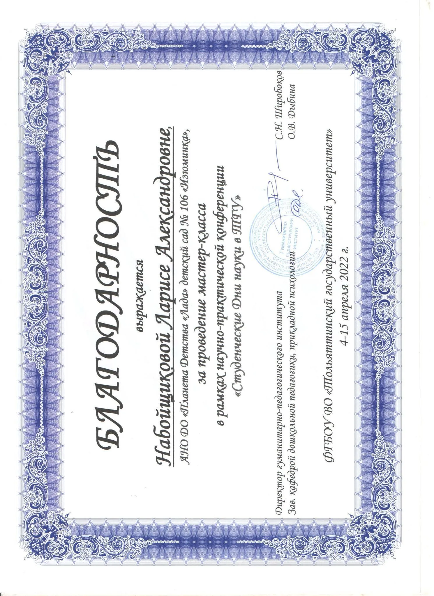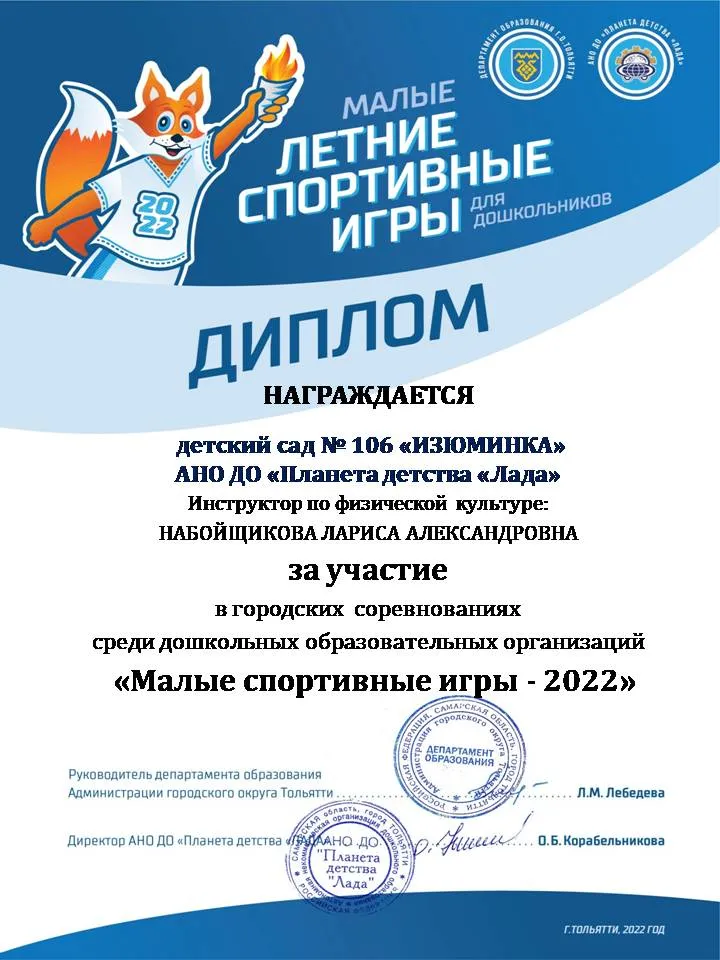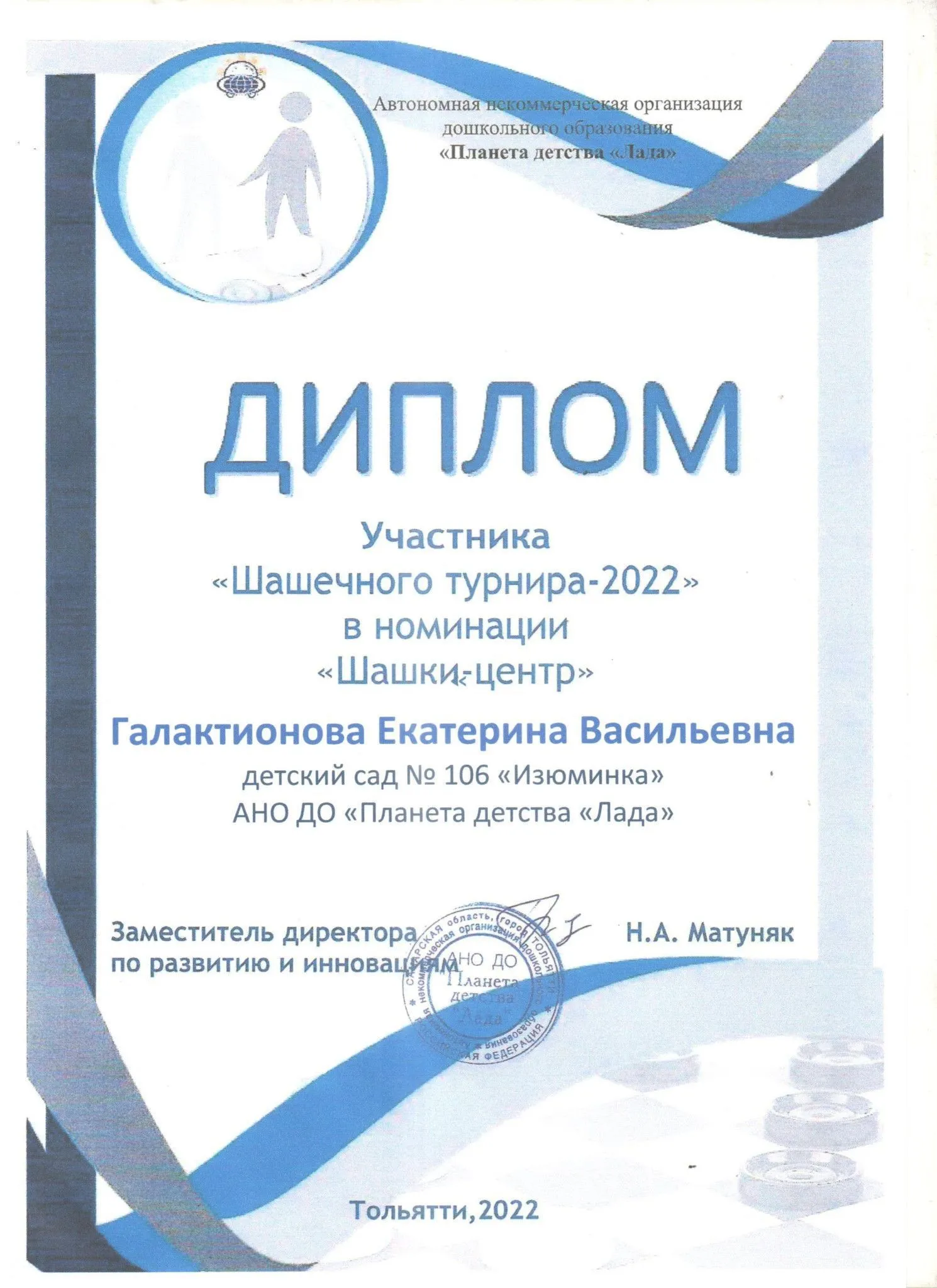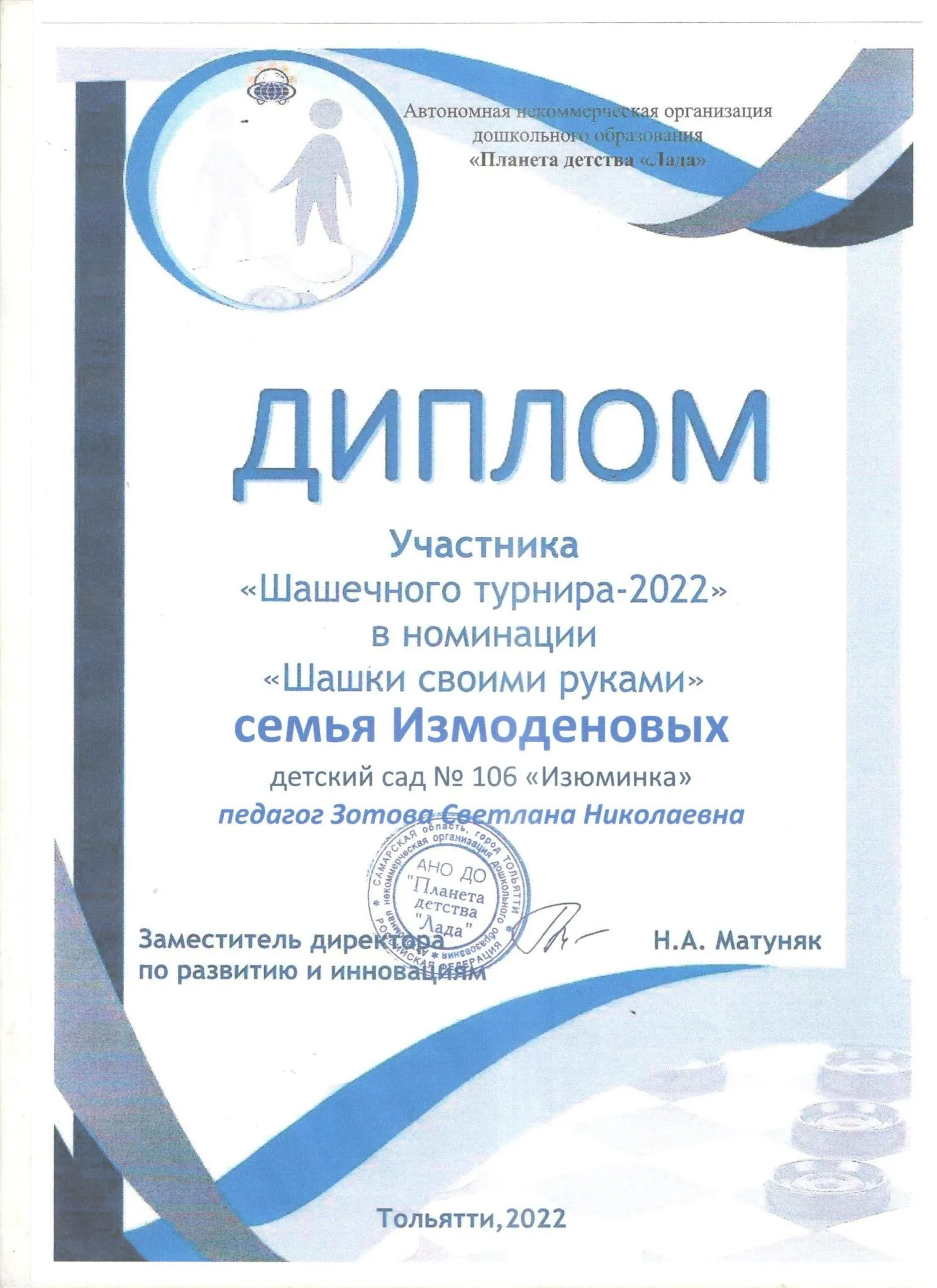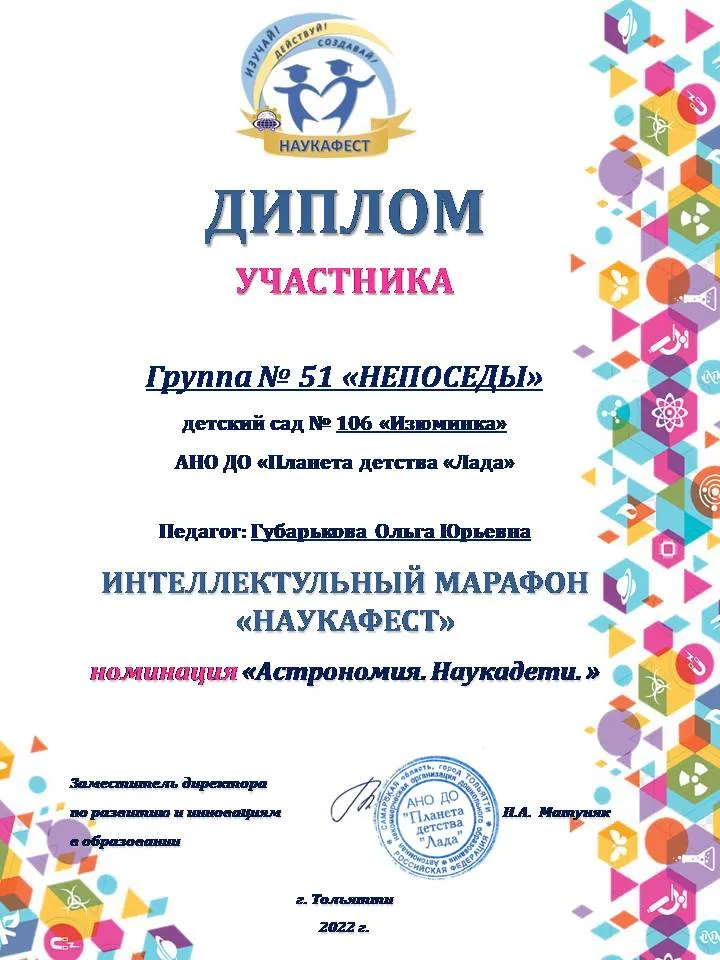Таким образом, инновационная деятельность педагогического коллектива детского сада осуществляется как на уровне АНО ДО «Планета детства «Лада» и г.о. Тольятти, так и на Региональном и Всероссийском уровне.