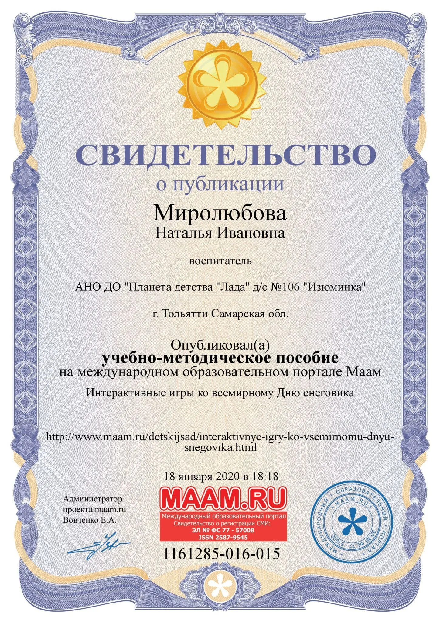 "Воспитатель года АНО 2025"