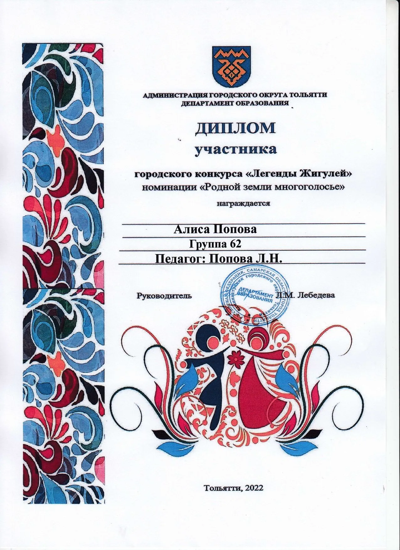 Заместитель заведующего по воспитательной и методической работе - Солдатенко Людмила Ивановна