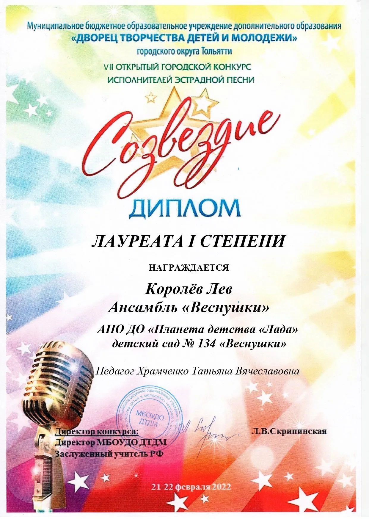 | Мультстудия как средство развития речи» | 6-7 лет | Дополнительная общеобразовательная общеразвивающая программа технической направленности «Мультстудия как средство развития речи»для детей 6 - 7 лет. Авторы: Недорезова Н.А., Храмова И.К. | подгрупповая | 1 | 91 |