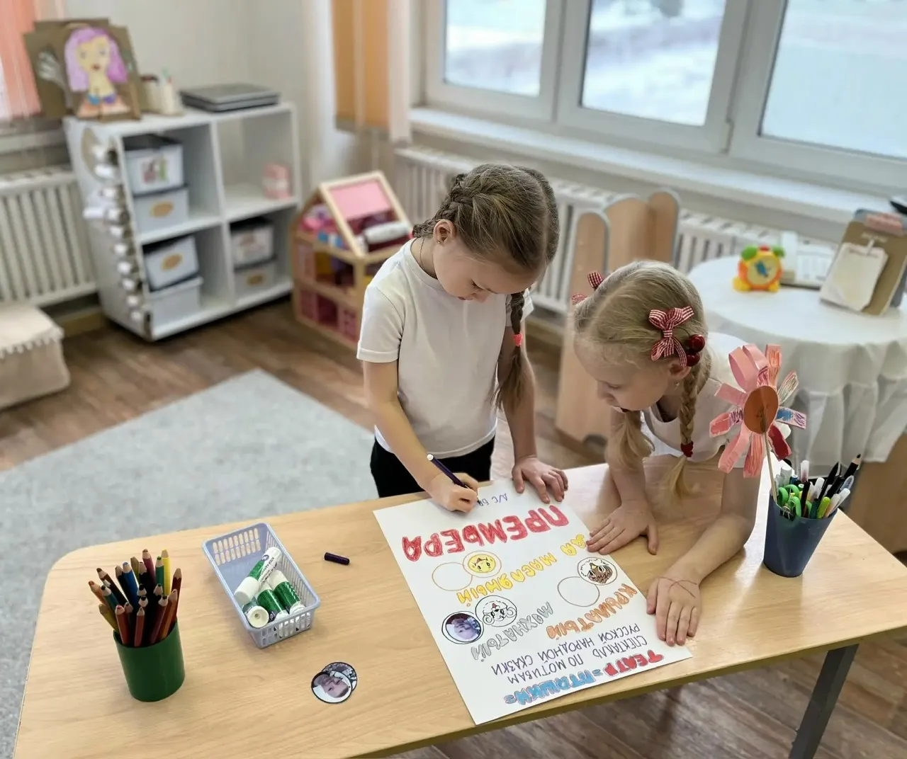 Вы увидите как ребята старательно изготавливают афиши и атрибуты.