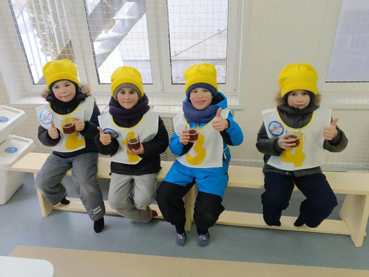 Никто и не заметил морозной погоды — так все были увлечены игрой и азартом соревнований! А после всех ледяных стартов наших чемпионов ждала приятная часть — согревающий горячий чай с лимоном .
