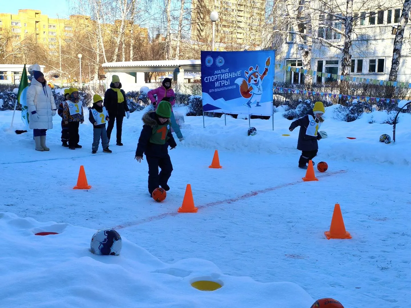 Сегодня на футбольной площадке «Крепыша» разгорелись настоящие спортивные баталии! Юные спортсмены из детских садов №150, 159, 169, 171 и 190 соревновались на первом этапе Малых спортивных игр за звание лучшего мастера зимнего мяча.
