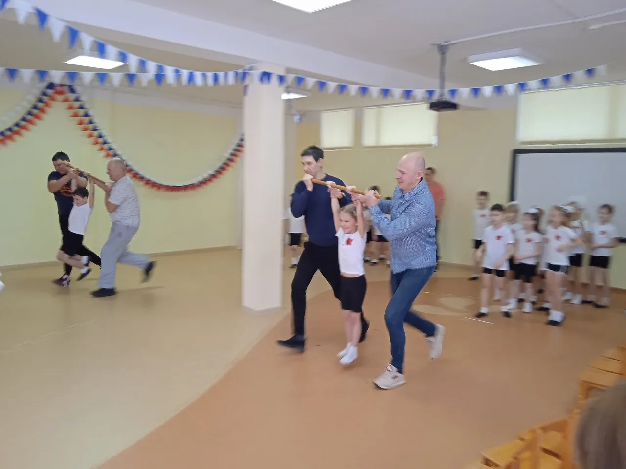 В честь Дня Защитника Отечества в подготовительных к школе группах прошли спортивные развлечения с участием пап. Ребята вместе с папами соревновались в ловкости, скорости, внимательности. Командный дух был на высоте! А сколько радости, когда тебя переносят папы!!! Все участники праздника получили заряд бодрости и веселья!