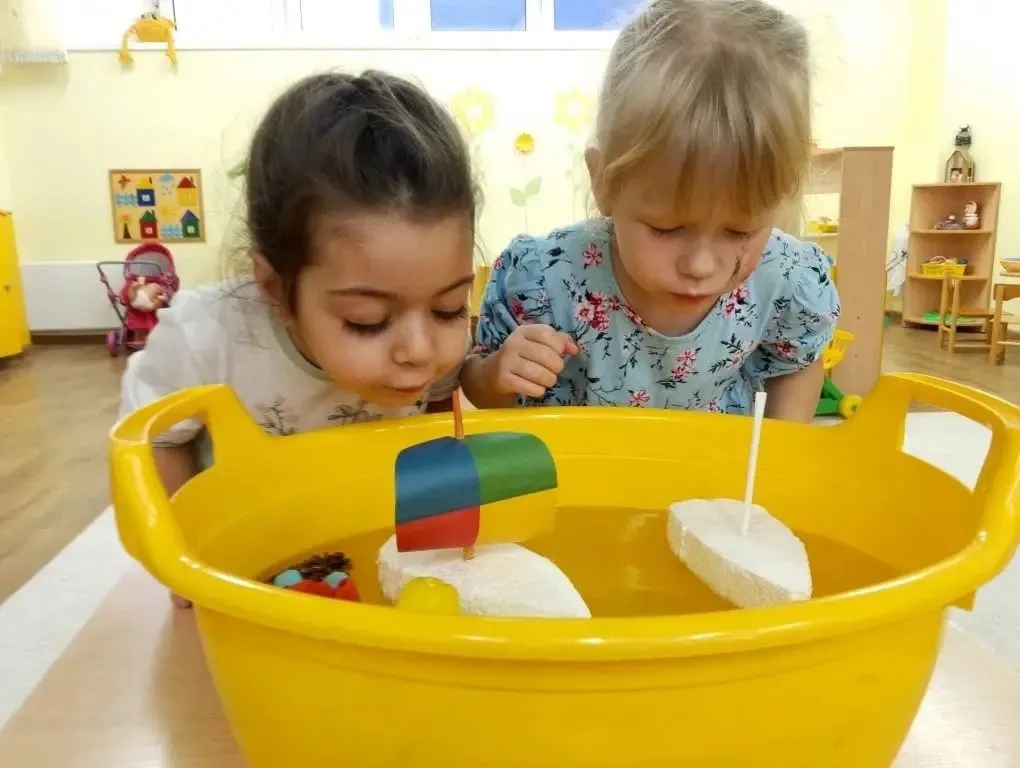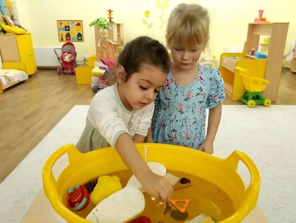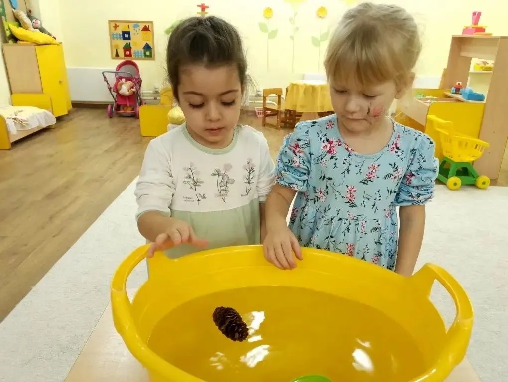 Опыты с водой: узнали, какие предметы тонут, а какие уверенно держатся на плаву.