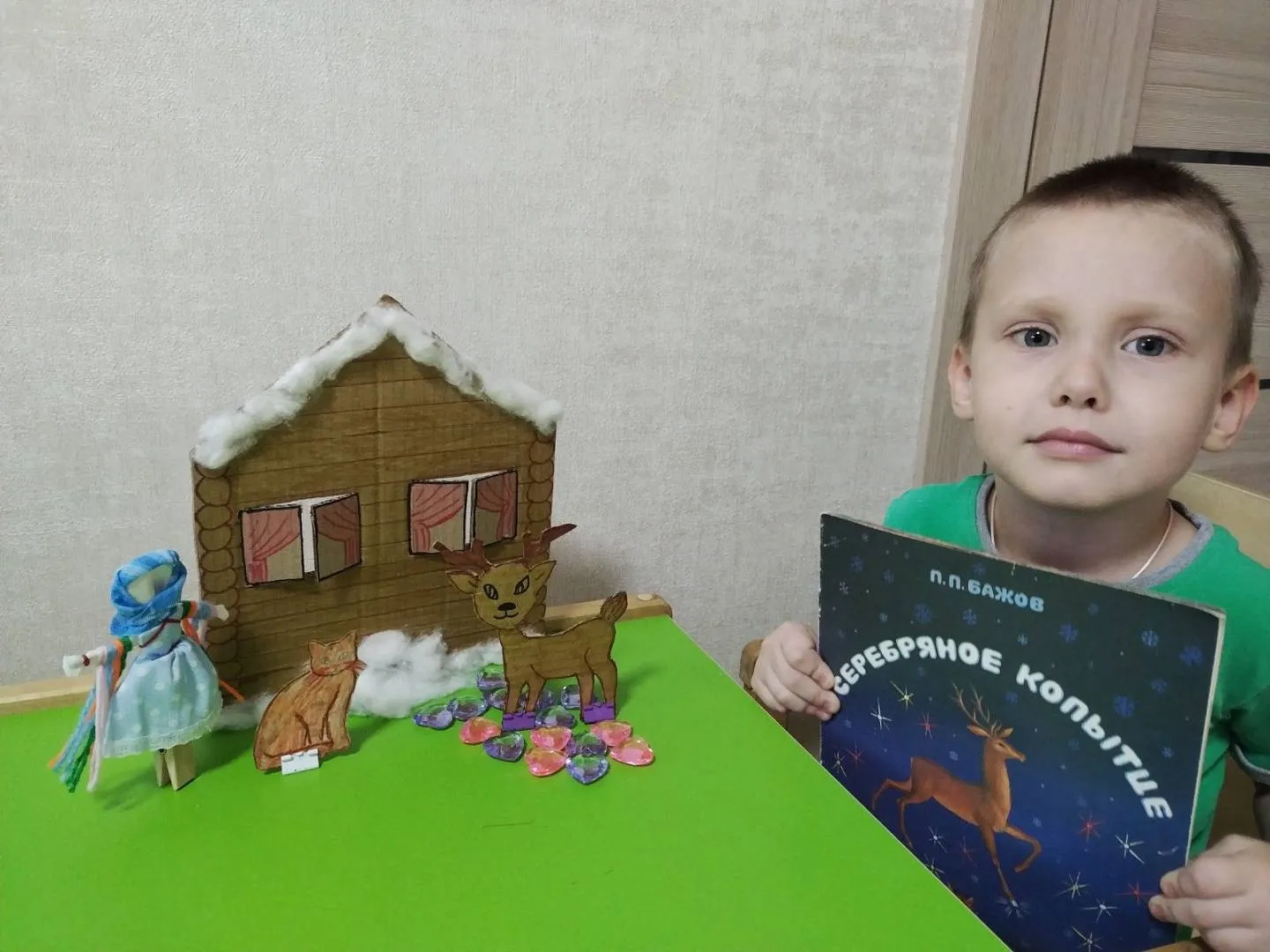В рамках традиции «Семейное чтение выходного дня» педагоги детского сада № 72 «Подсолнушек» предложили родителям дома прочитать вместе с детьми один из сказов П. Бажова на выбор. Большинство семей выбрали сказку «Серебряное копытце», и неудивительно, ведь, это самый «детский» сказ писателя, понятный юным читателям уже с пяти лет. Своими впечатлениями о чтении сказов Бажова в семейном кругу рассказывает мама Егора К., Светлана Анатольевна: «Я думаю, что именно на примере сказок нам, родителям, легче всего объяснить ребёнку, что такое хорошо, что такое плохо, научить их ценить дружбу, верность, уважать труд взрослых. Сказы Бажова именно об этом. А уж как красив язык произведений Бажова, хотя и непрост для современных детей. Но уверена, что это полезно для развития речи ребёнка. После прочтения сказки «Серебряное копытце» мы с Егором смастерили небольшой театр с героями из подручных средств. Ничего особенного для этого не потребовалось, а эмоций положительных – море!».