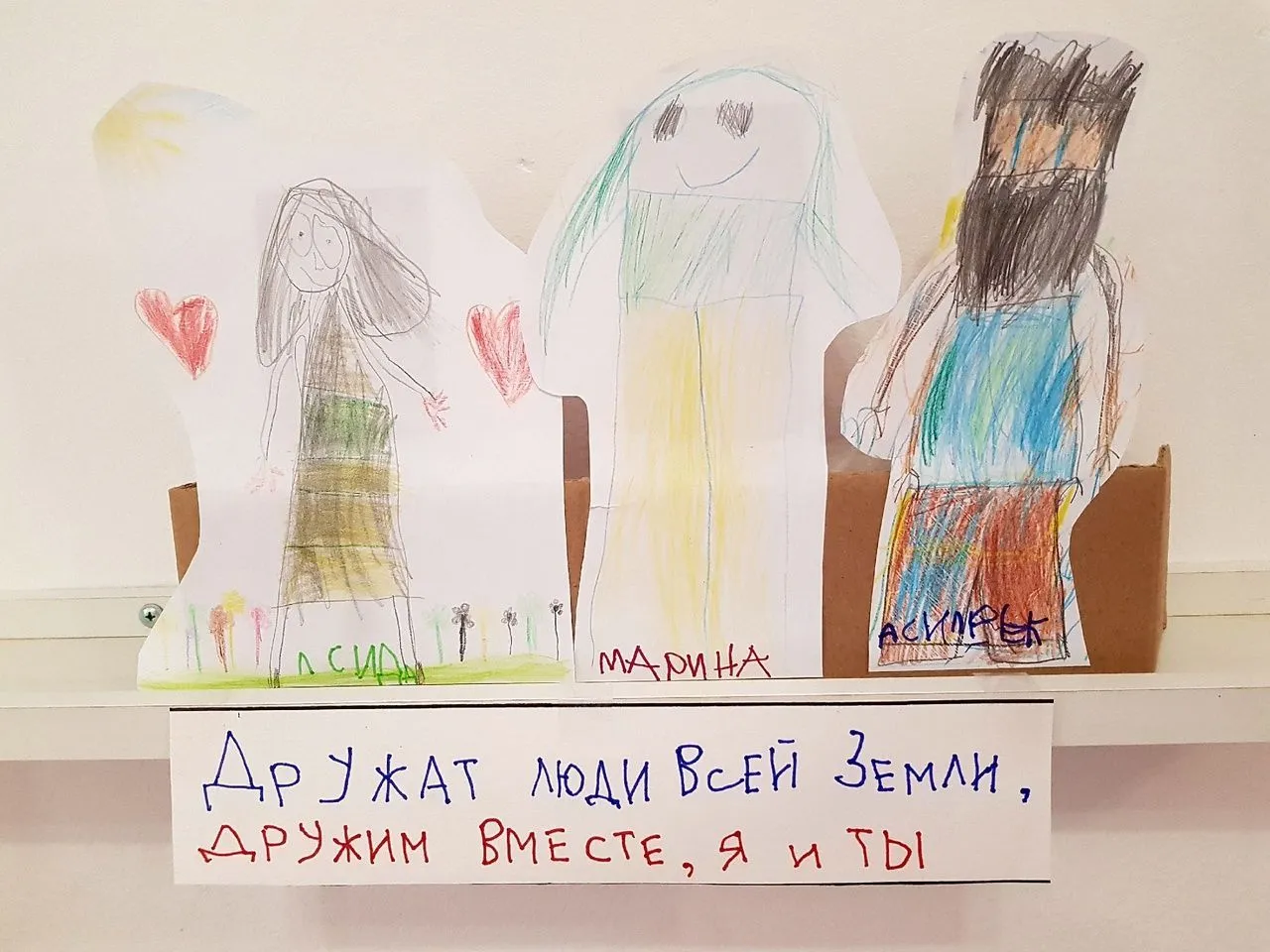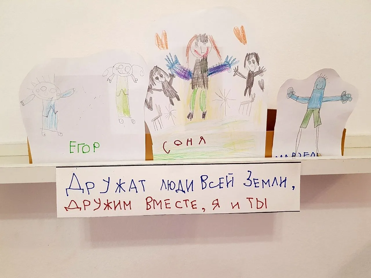 В преддверии праздника,"День народного единства",дети 71 группы пополнили свои знания по теме "Государственные праздники".Рассматривали иллюстрации о главном городе нашей страны- Москве,заглянули в копилочки с магнитиками и открытками,познакомились с разными национальностями людей,населяющих нашу страну, которые представлены на макете "Народы России".День завершился выставкой рисунков " Дружат люди всей Земли..."