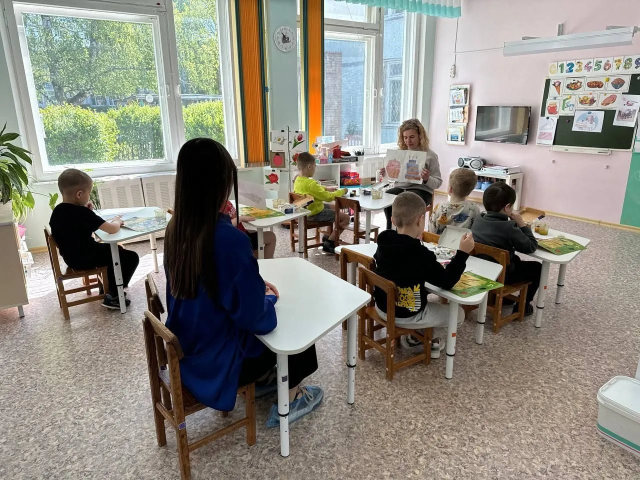 Родители побывали на утренней гимнастике, на занятиях по грамоте, рисовании, приняли участие в викторине и помогли украсить окна к Дню Победы...