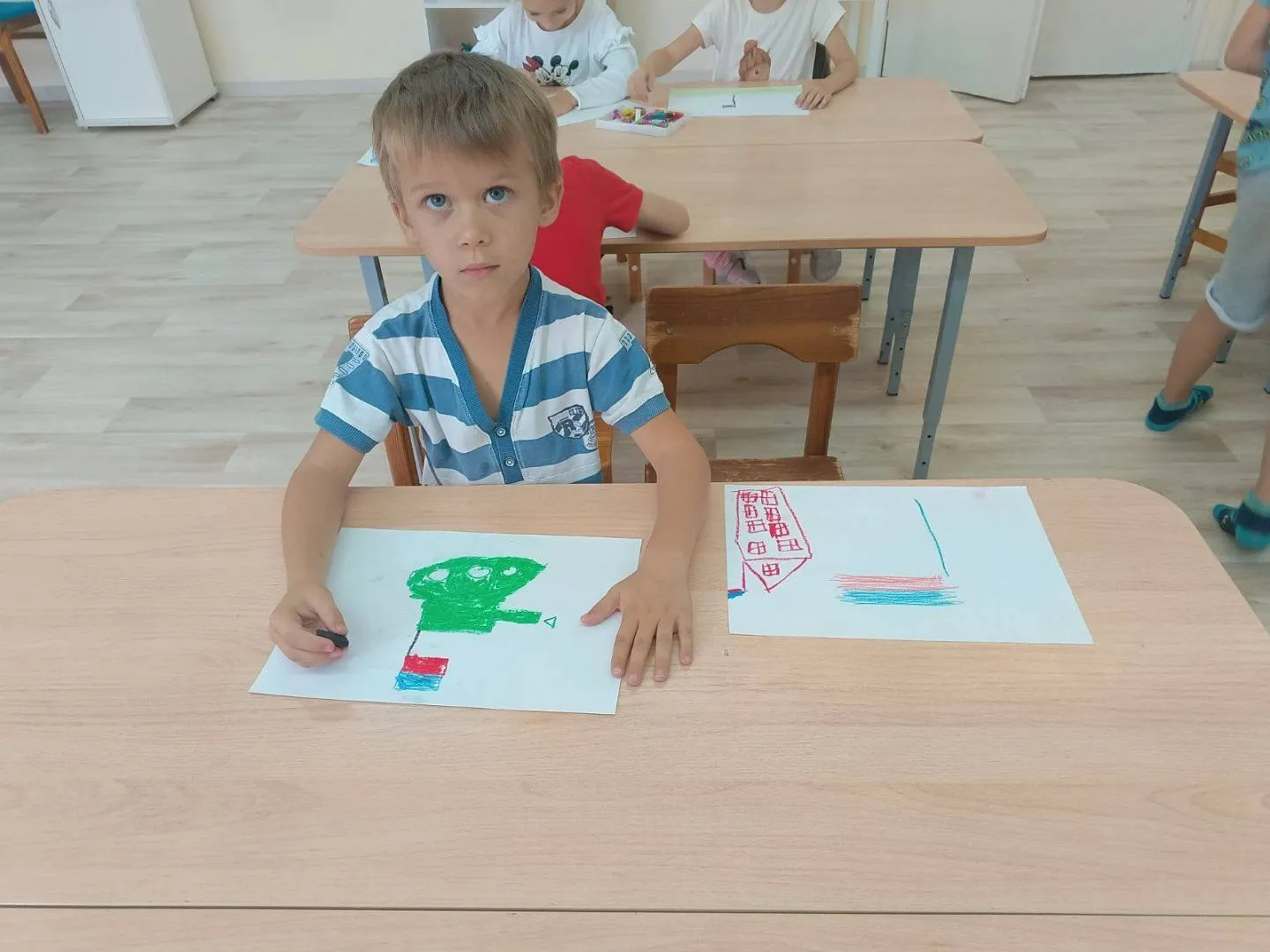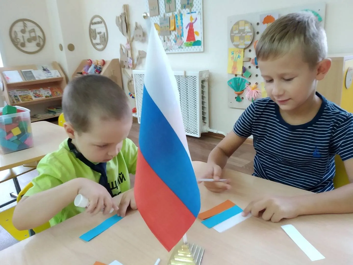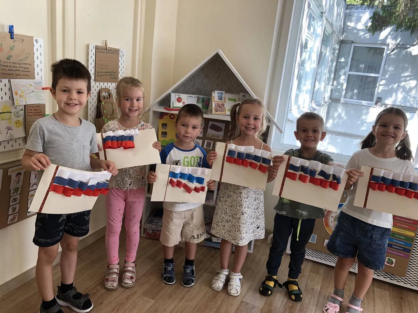 В детских ручках — маленький флажок.