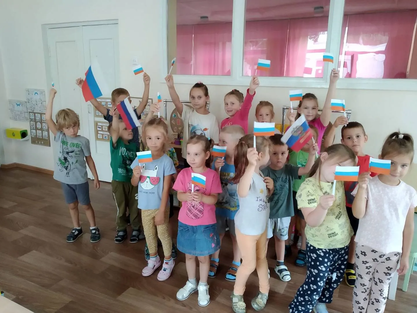 Приобщение детей к государственной символике Российской Федерации – одна из приоритетных задач в патриотическом воспитании дошкольников. Традиционно 22 августа в детском саду "Калинка" было организованно и проведено ряд мероприятий, целью которых стало формирование нравственно — патриотических качеств, воспитания у дошкольников любви к семье, детскому саду, родному городу, родной природе. Чувства гордости, приобретению новых знаний, ярких впечатлений о важном государственном символе – Флаге России.