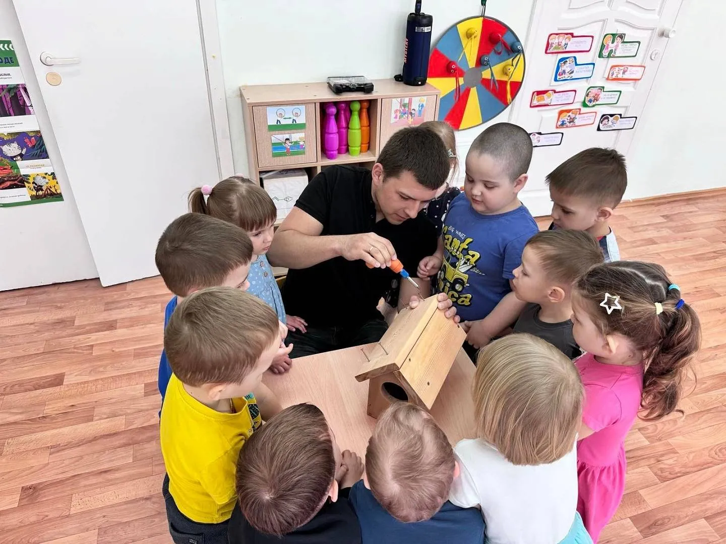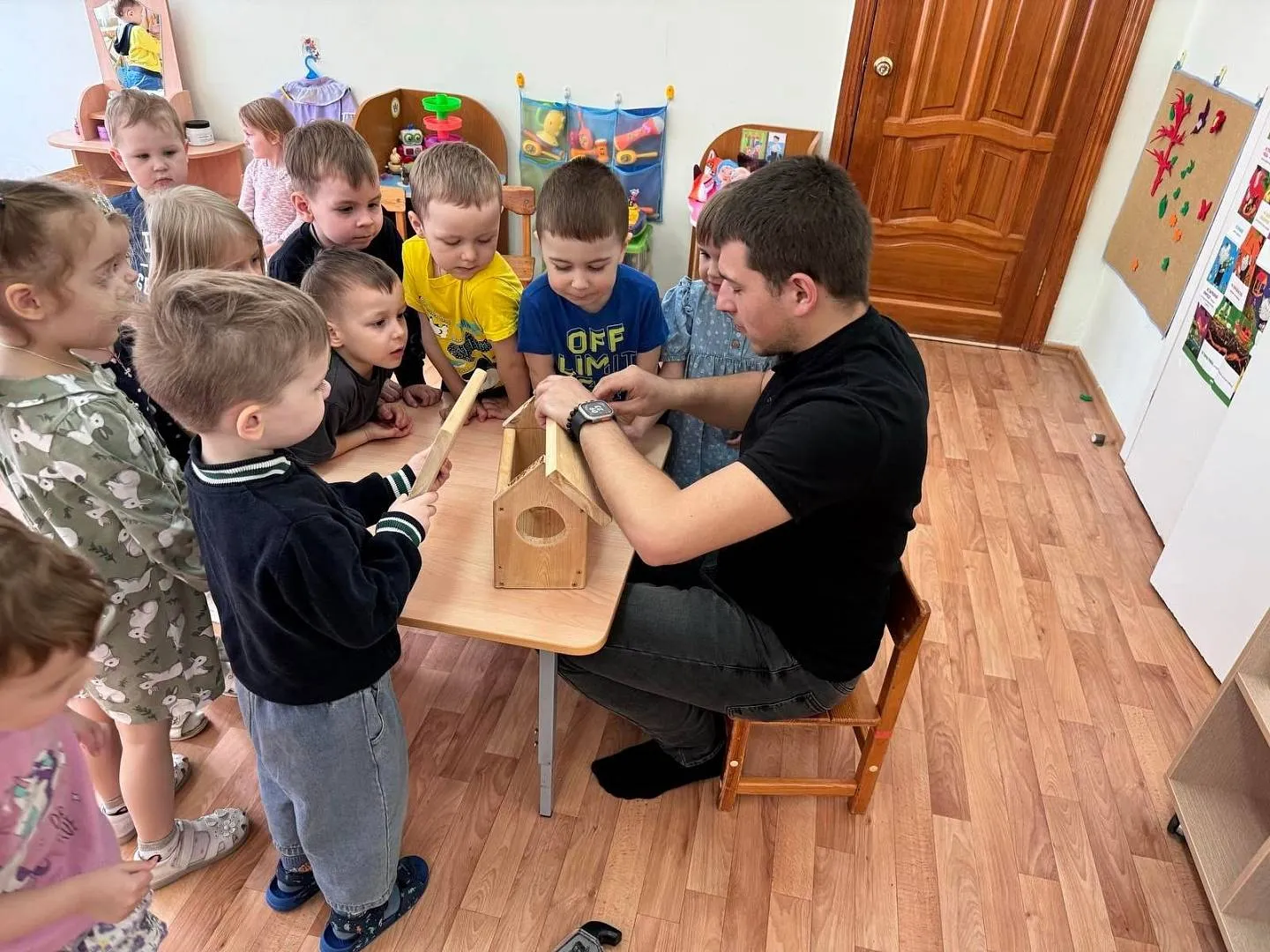 Младшая группа № 01 под руководством педагога Гореловой Олеси Николаевны приняли участие в волонтерской акции «Всем на свете нужен дом!» и совместно с папой воспитанницы Евы К. смастерили скворечник для птиц.