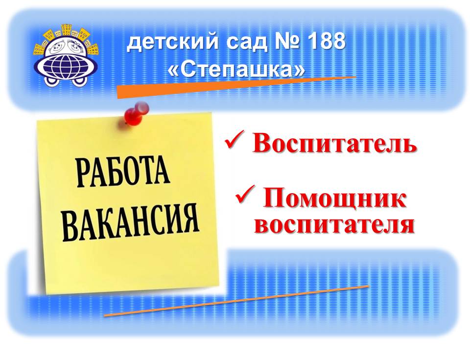 Детский сад № 188 «Степашка» приглашает на работу