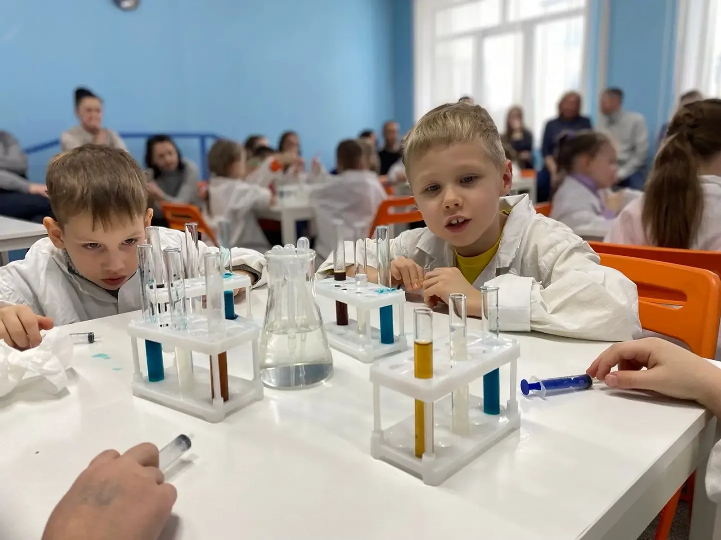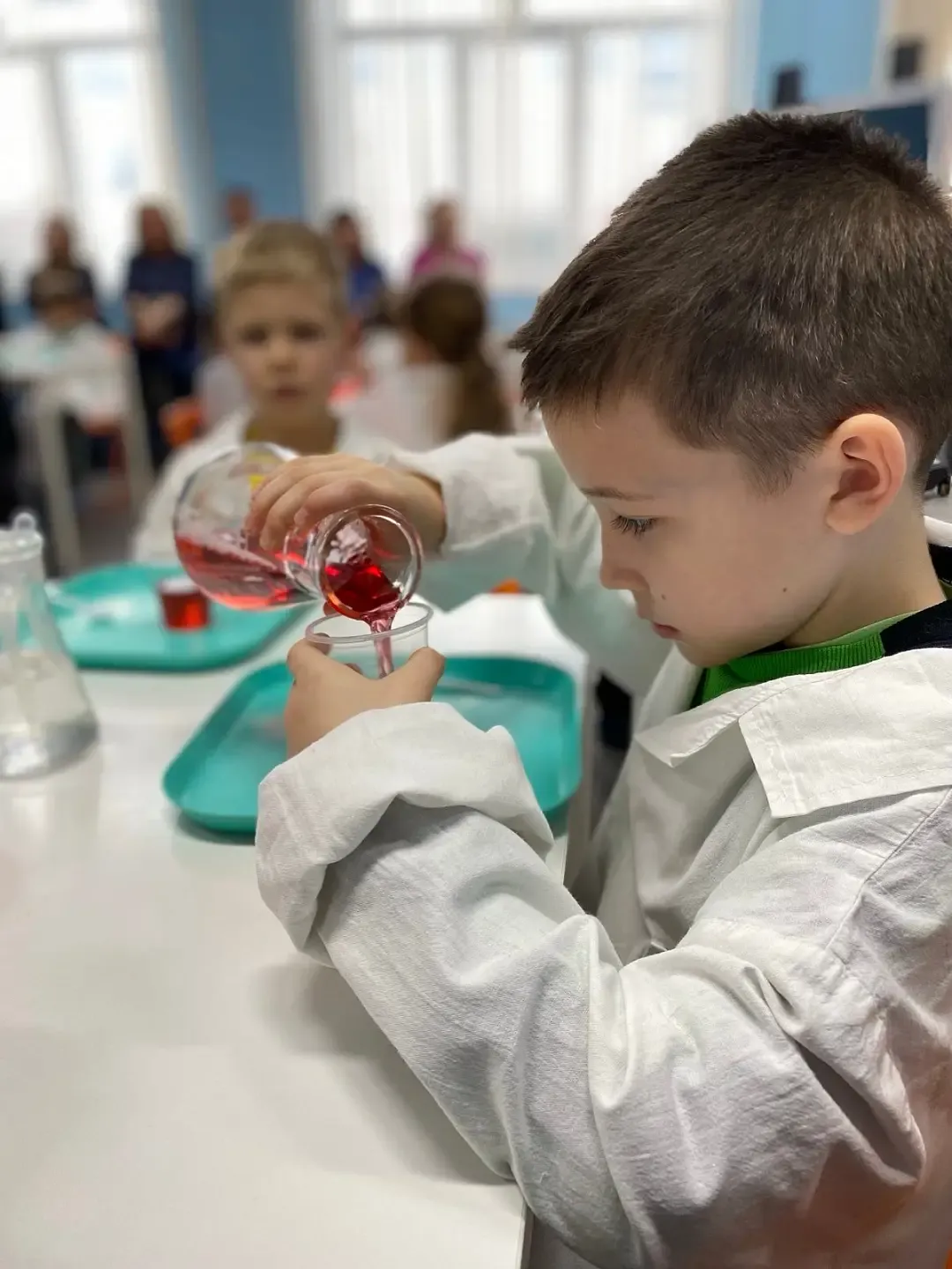 Ребята, с восторгом, рассказали: "Заливаем разные жидкости в пробирки и удивляемся - белое стало черным без использования краски!"