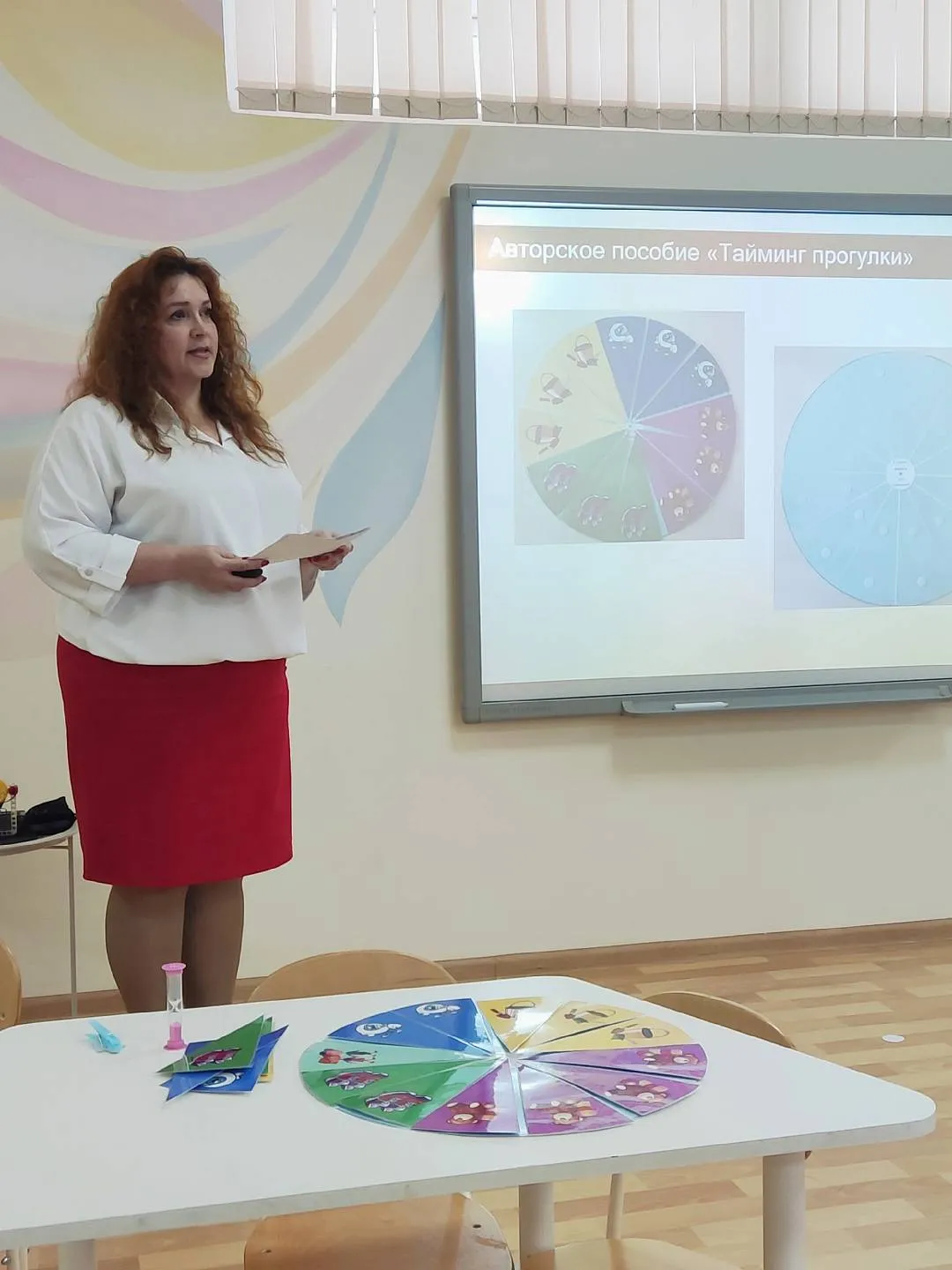Байденко Инна Валентиновна, заместитель заведующего по ВМР детского сада № 159"Соловушка", представила мастер-класс: «Архитекторы времени: как научить старших дошкольников управлять деятельностью на прогулке», направленный на повышение профессиональной компетентности педагогов в вопросах формирования у дошкольников временных представлений и навыков самоорганизации через внедрение игрового пособия «Тайминг прогулки».