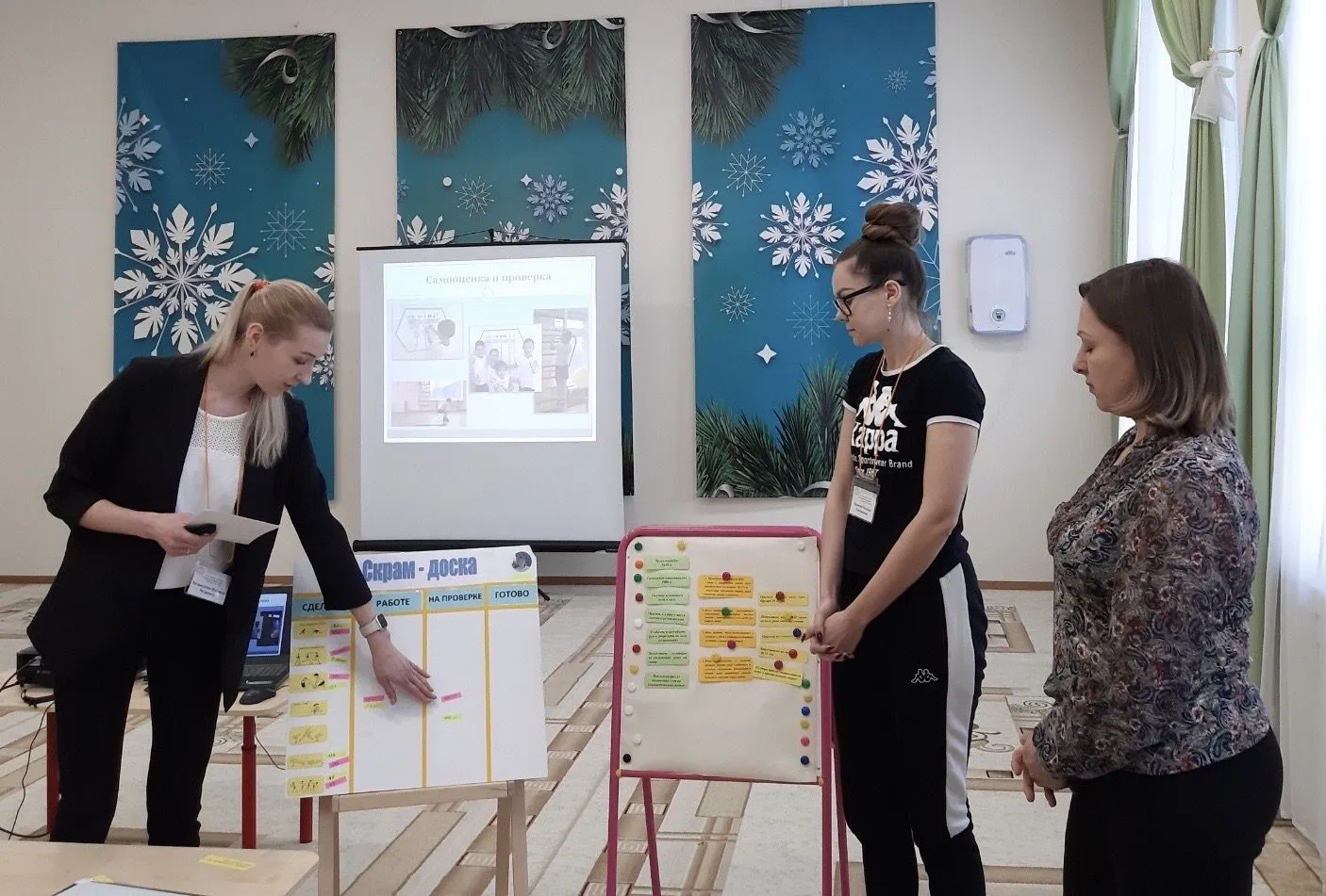 Загороднева Надежда Петровна, инструктор по физической культуре детского сада № 140 «Златовласка» продемонстрировала участникам мастер-класса педагогическую эффективность и результативность использования «SCRUM-доски» для развития самоорганизации дошкольников в двигательной деятельности.