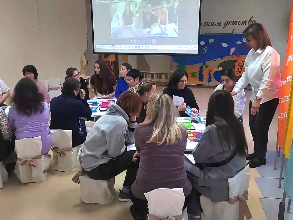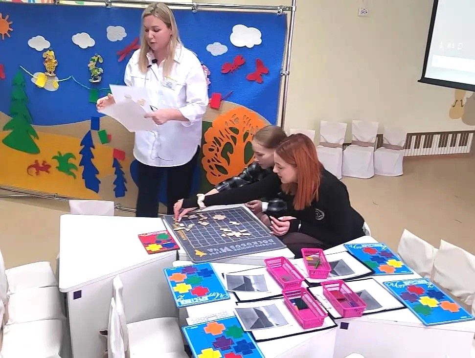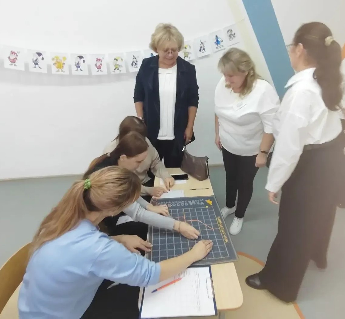 Участникам семинара-практикума была предоставлена возможность на практике отработать игровые формы работы с семейными и детскими командами с помощью игровых и дидактических пособий В.В. Воскобовича, примерив на себя по очереди роль родителя, ребенка или эксперта предстоящих соревнований. Также были даны подробные методические рекомендации по подготовке к Игрофестивалю «Сказочные лабиринты» - 2026: организации и проведению «Игротеки для малышей», «Семейным/командным интеллектуальным играм» на базе каждого детского сада.