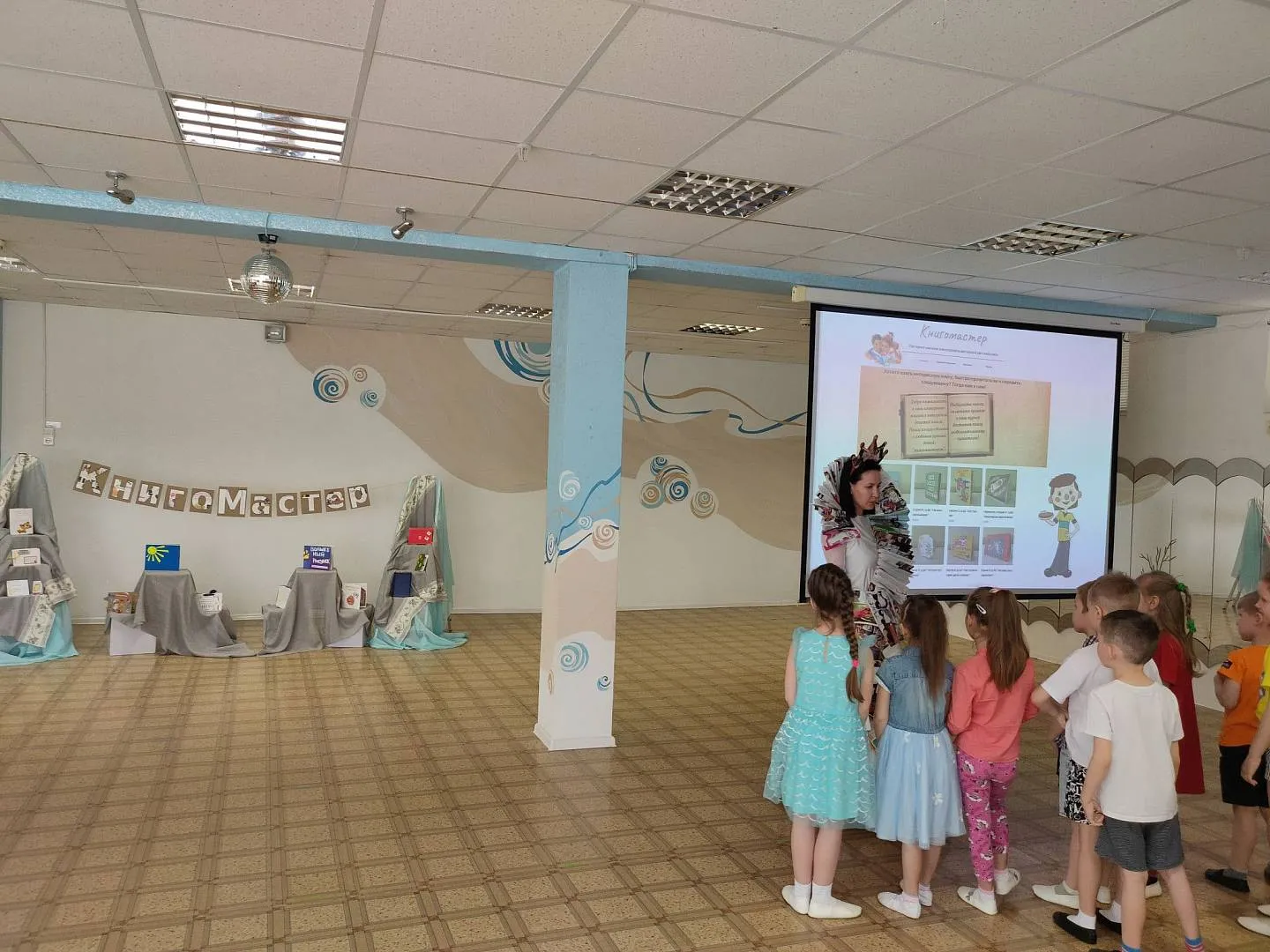 «Книгомастер» - это долгосрочное мероприятие, поэтому оно предполагает большую предварительную работу. Так, например, дети вместе с родителями детского сада посетили библиотеку имени Г. Жукова. Там дети узнали, что библиотека – это место бережного хранения книг, книги в библиотеке не только хранят, но и выдают читать на дом, а человек, который пришел в библиотеку за книгой, называется – читатель.