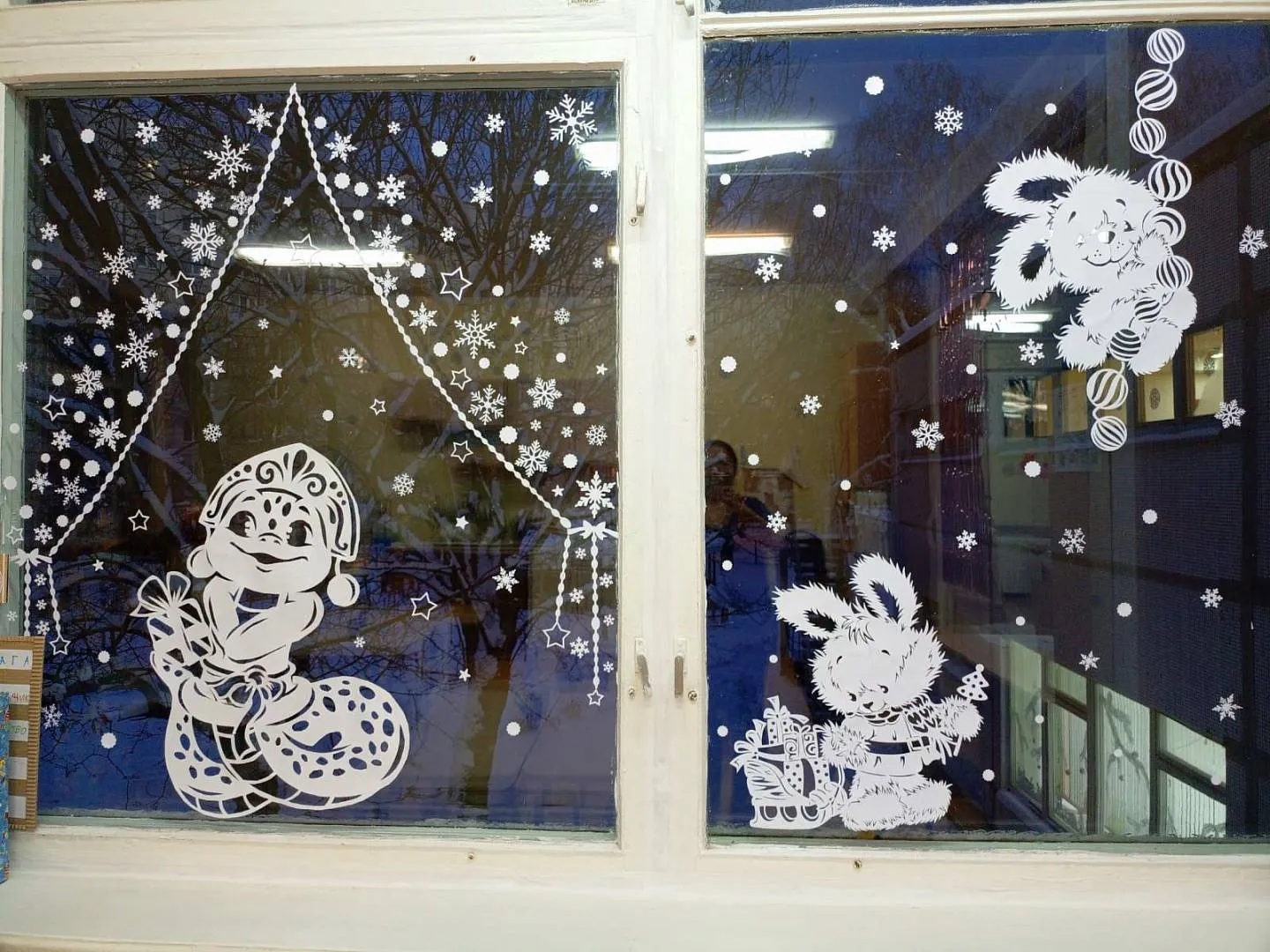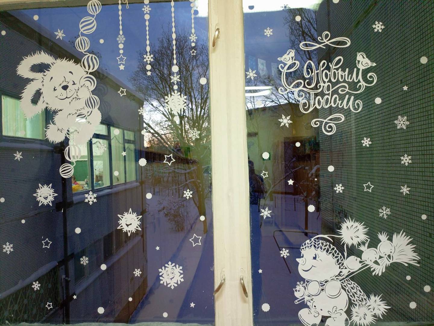 Снеговики, Снегурочки, Зайчата, и даже герои всеми любимого мультфильма "Трое из Простоквашино" поселились на окнах детского сада.