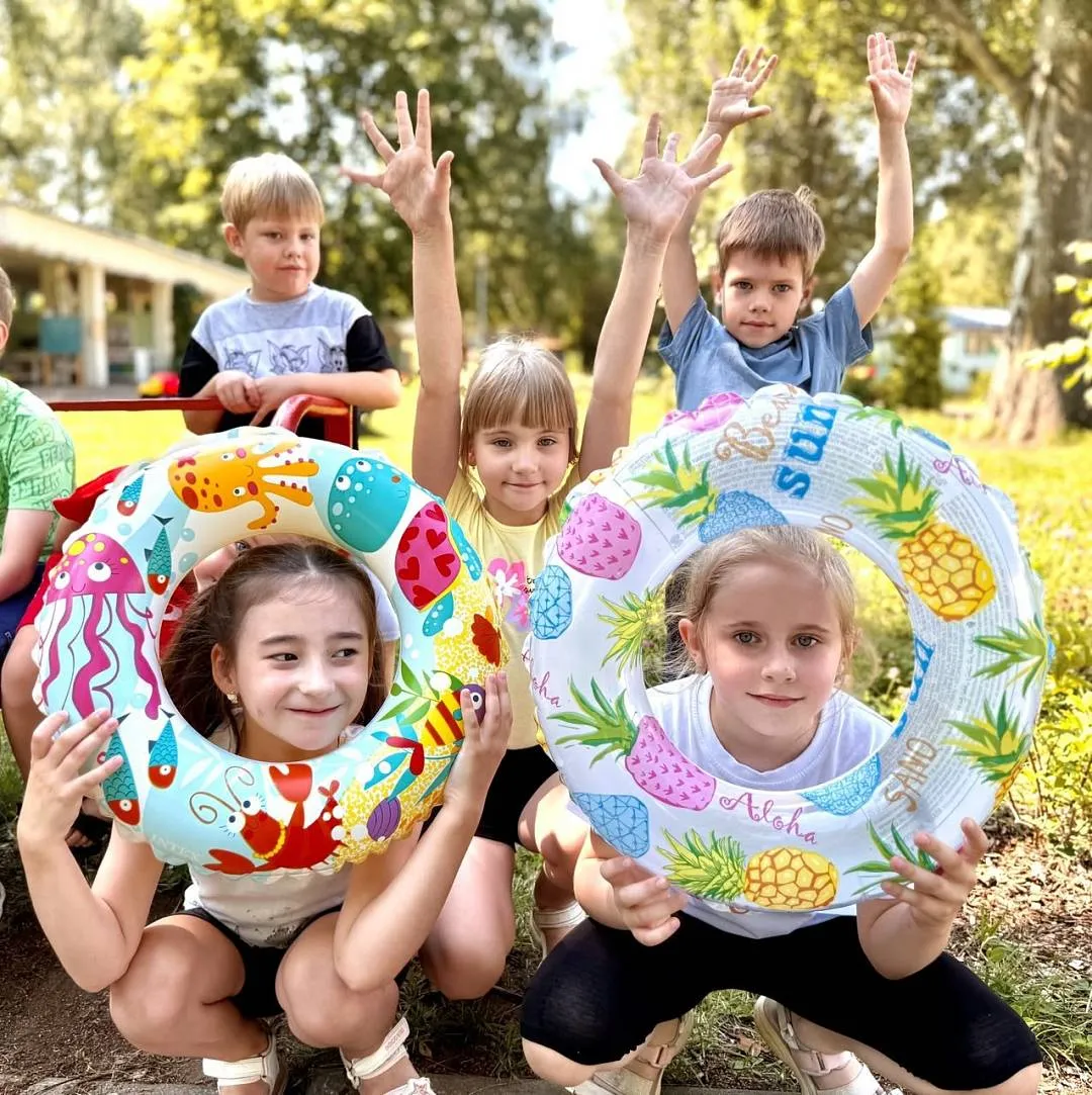 - Эстафета с надувным кругом – здесь важны были скорость, координация и умение работать в команде. Кто быстрее? Борьба была жаркой!