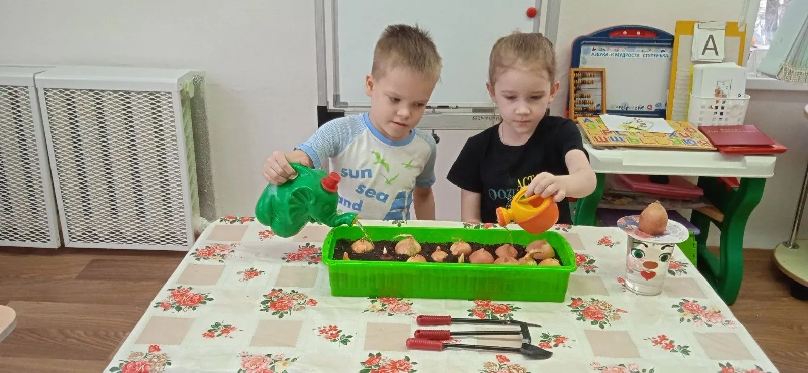 Ребята 62 группы знают, что такое полезное питание. Поэтому на подоконнике своей группы они вырастили зелёный лук!