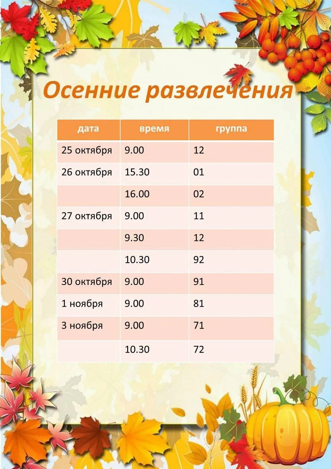 Приглашаем на осенние развлечения!