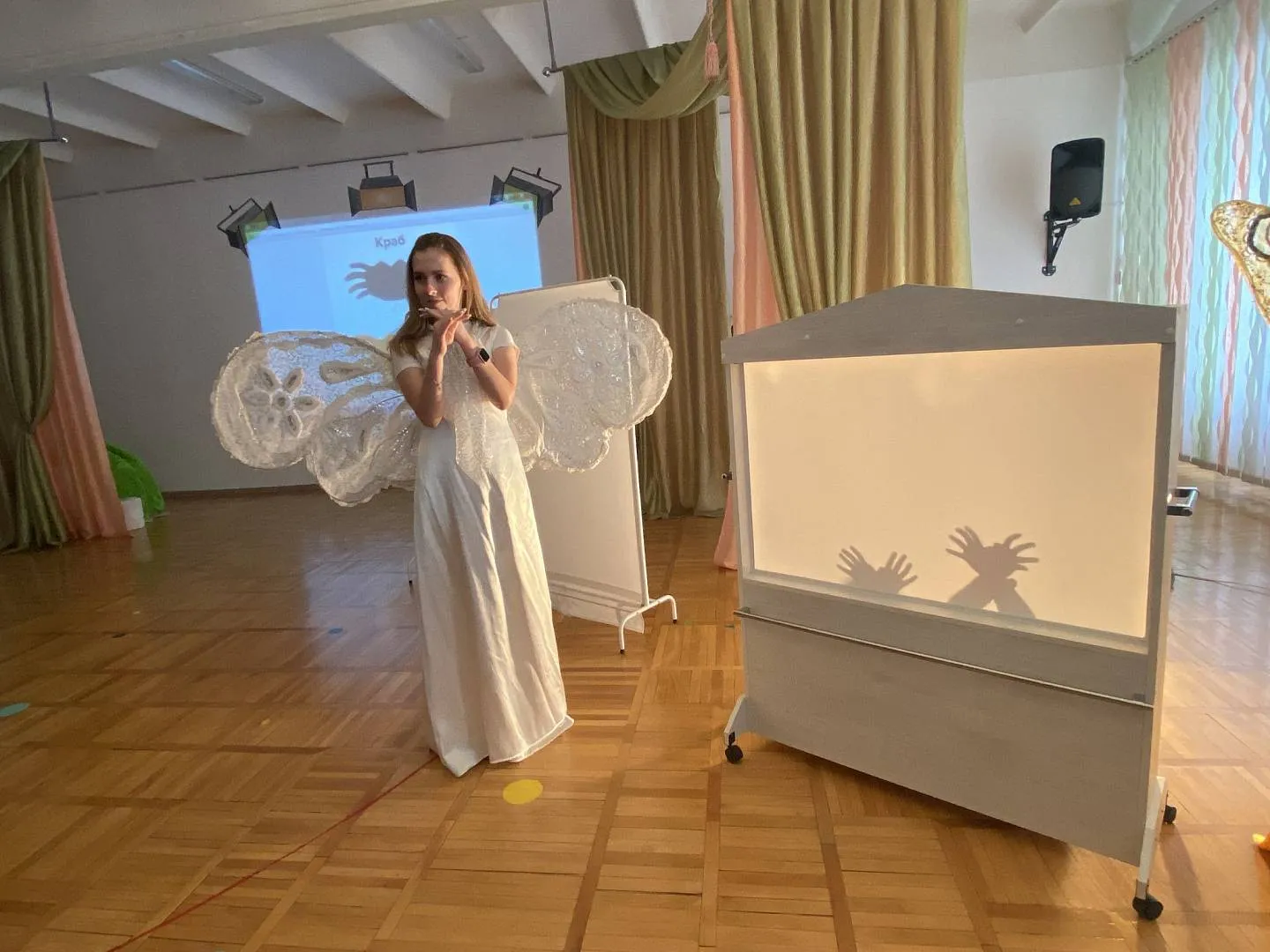 Ребята из старших и подготовительных к школе групп детского сада № 198 «Вишенка» участвовали в театрализованной интерактивной программе «Знатоки театральных чудес». Вместе с прекрасными бабочками дети попали в театральное закулисье. Здесь они превратились в настоящих актёров теневого театра. Кульминационным моментом торжественного мероприятия стало появления Театрика. Гость пришёл к ребятам не с пустыми руками. Как и обещал, он принёс золотой ключик, которым открыл замок от театральной студии каждой группы детского сада!