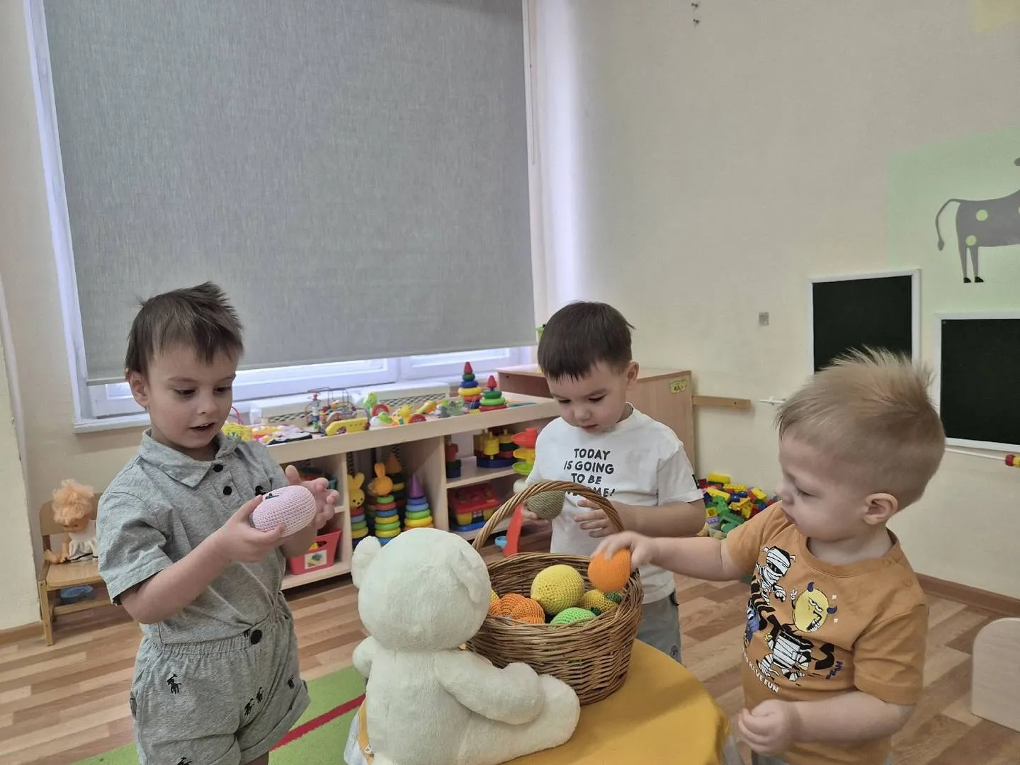 Мишка Топтыжка пришёл сегодня к гости к самым маленьким ребятам в нашем детском саду. Он подготовил для ребят целую корзину интересных фруктов, овощей и ягод. Ребята не только вспомнили названия, но и повторили вместе с мишкой знакомые цвета.